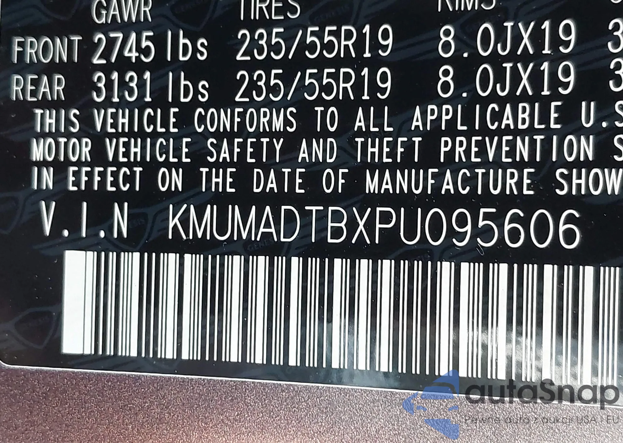 LOT: 42719061 VIN: KMUMADTBXPU095606