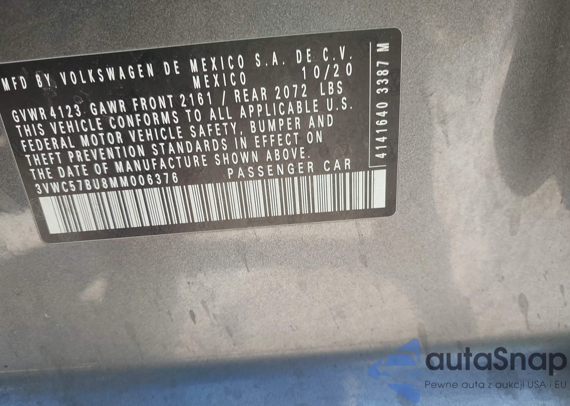 • VIN 3VWC57BU8MM006376