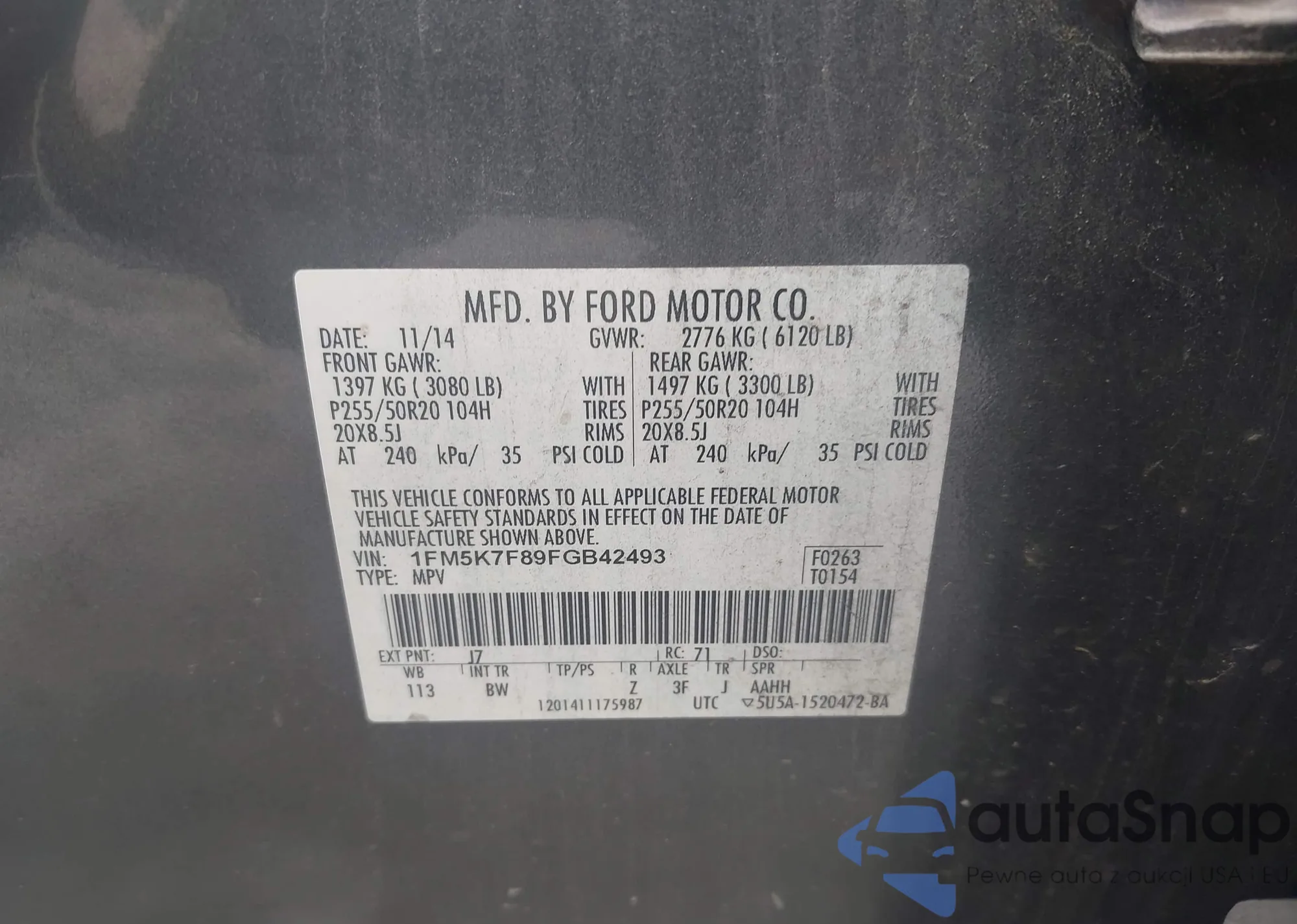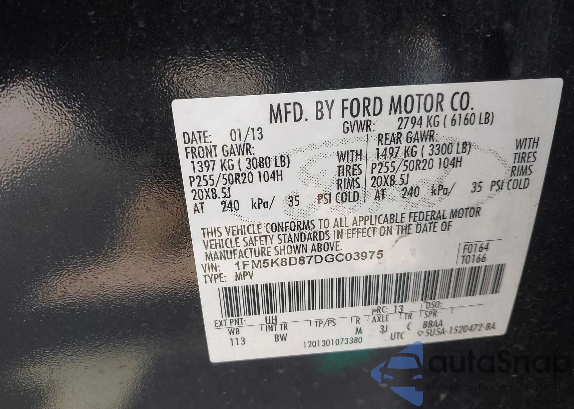 LOT: 42907498 VIN: 1FM5K8D87DGC03975