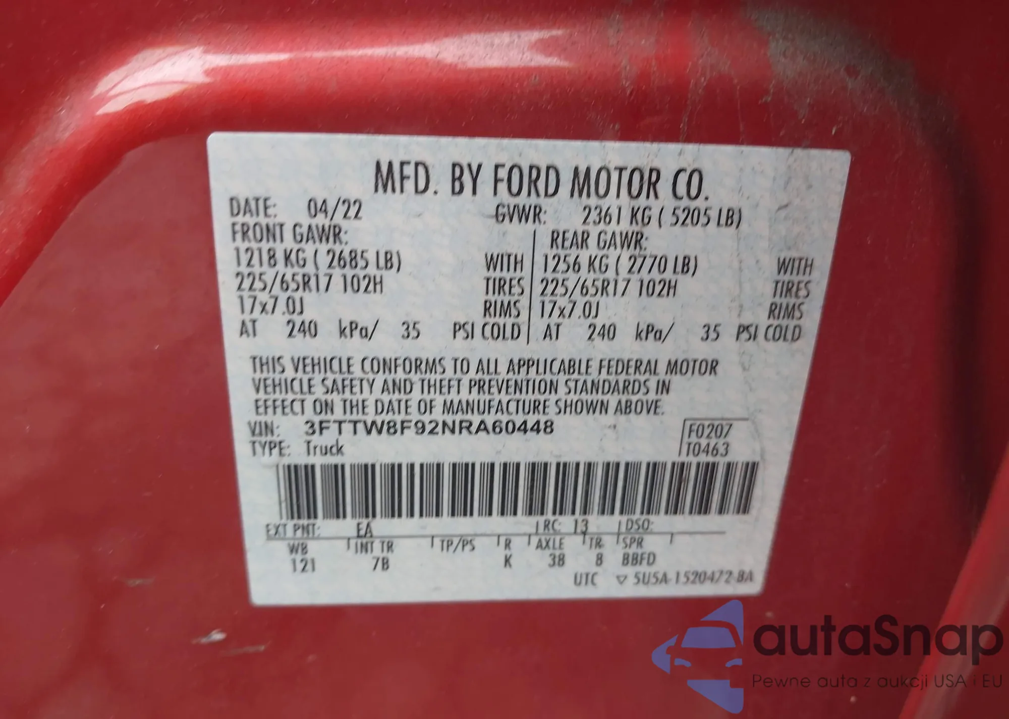 • VIN 1FTFX1EF4CFC72402