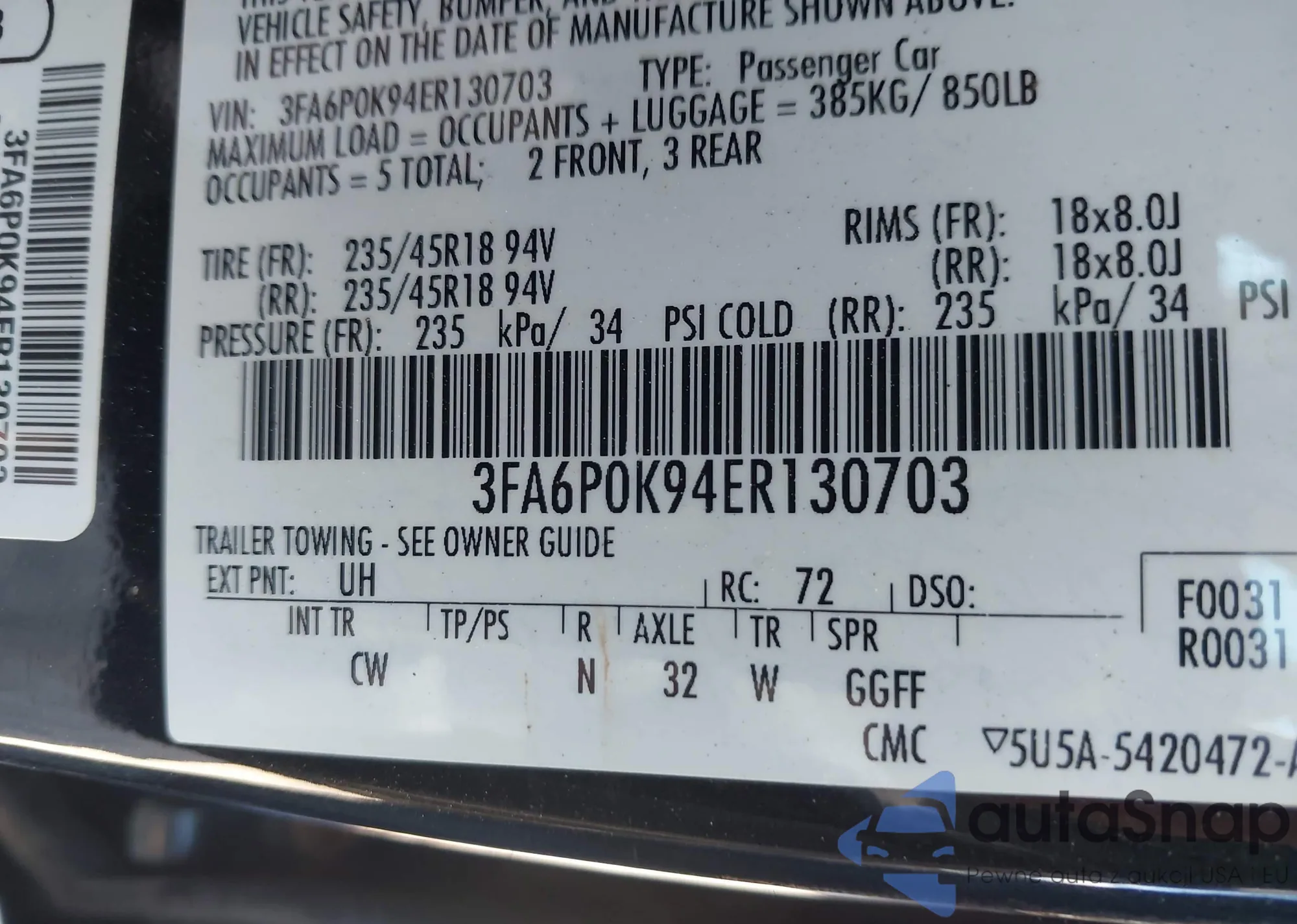 • VIN 3FA6P0K94ER130703