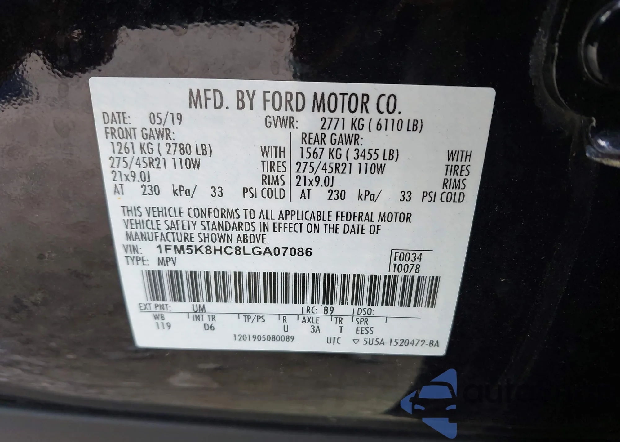 • VIN 1FM5K8HC8LGA07086