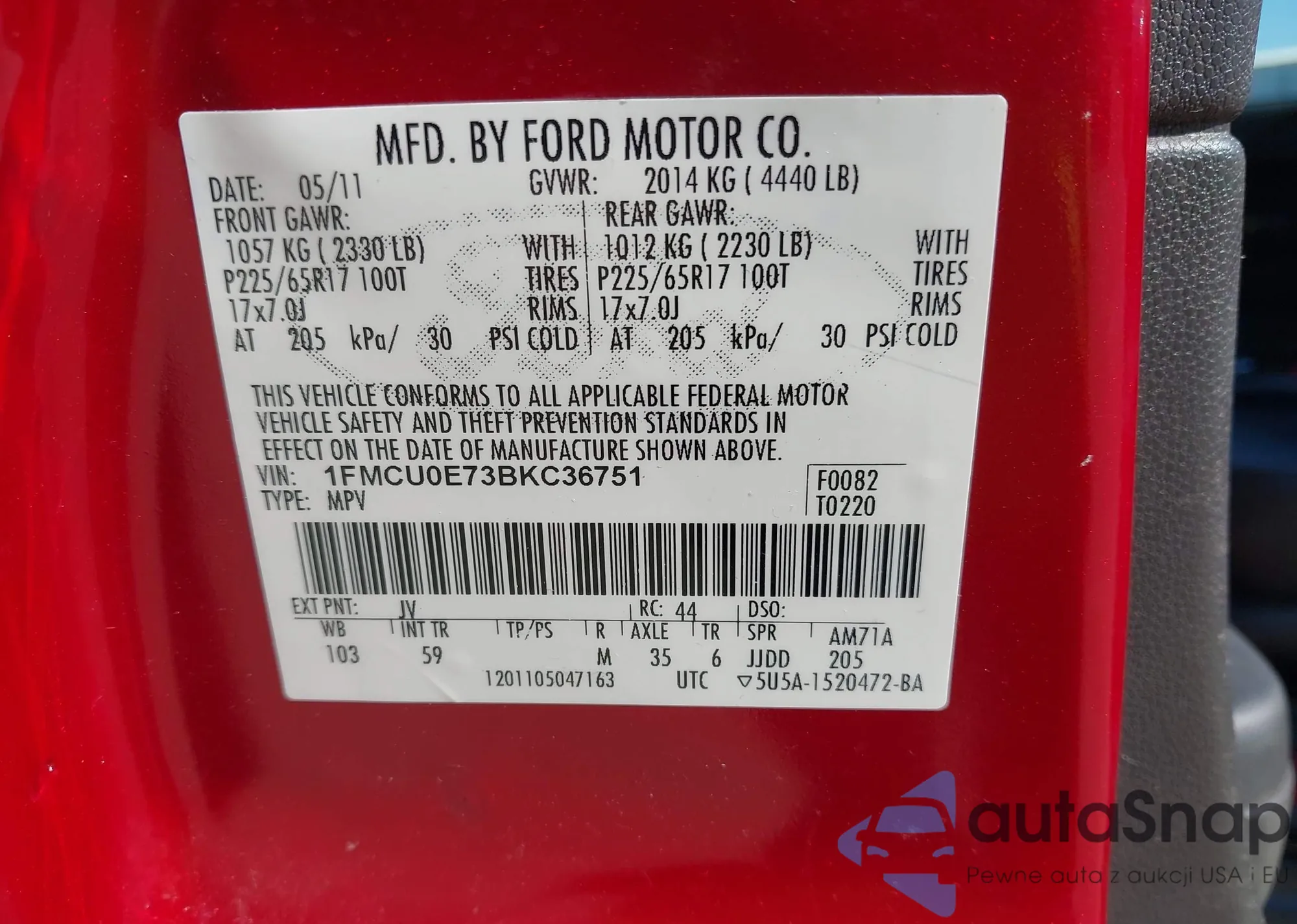 LOT: 43131253 VIN: 1FMCU0E73BKC36751