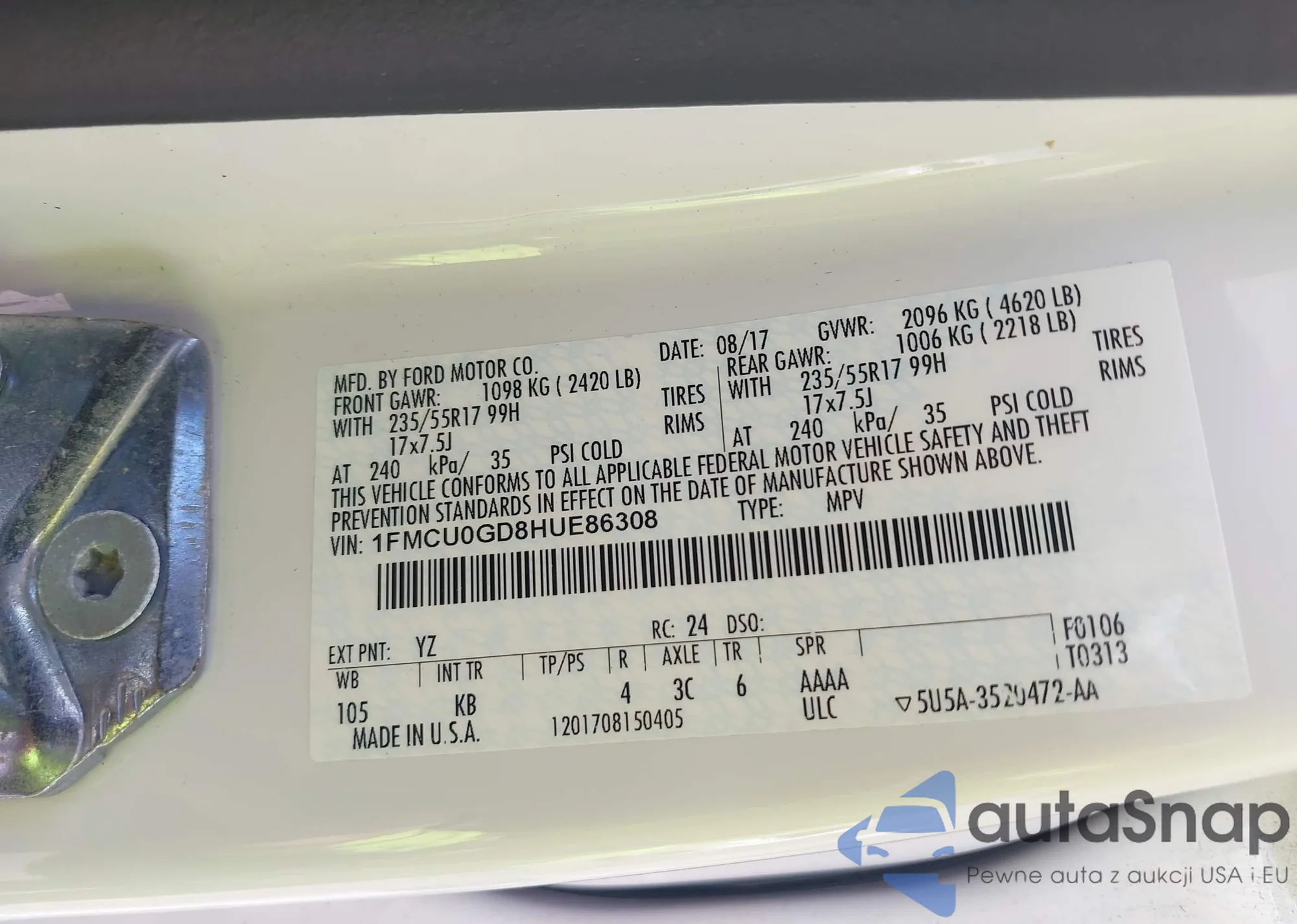 LOT: 42792753 VIN: 1FMCU0GD8HUE86308