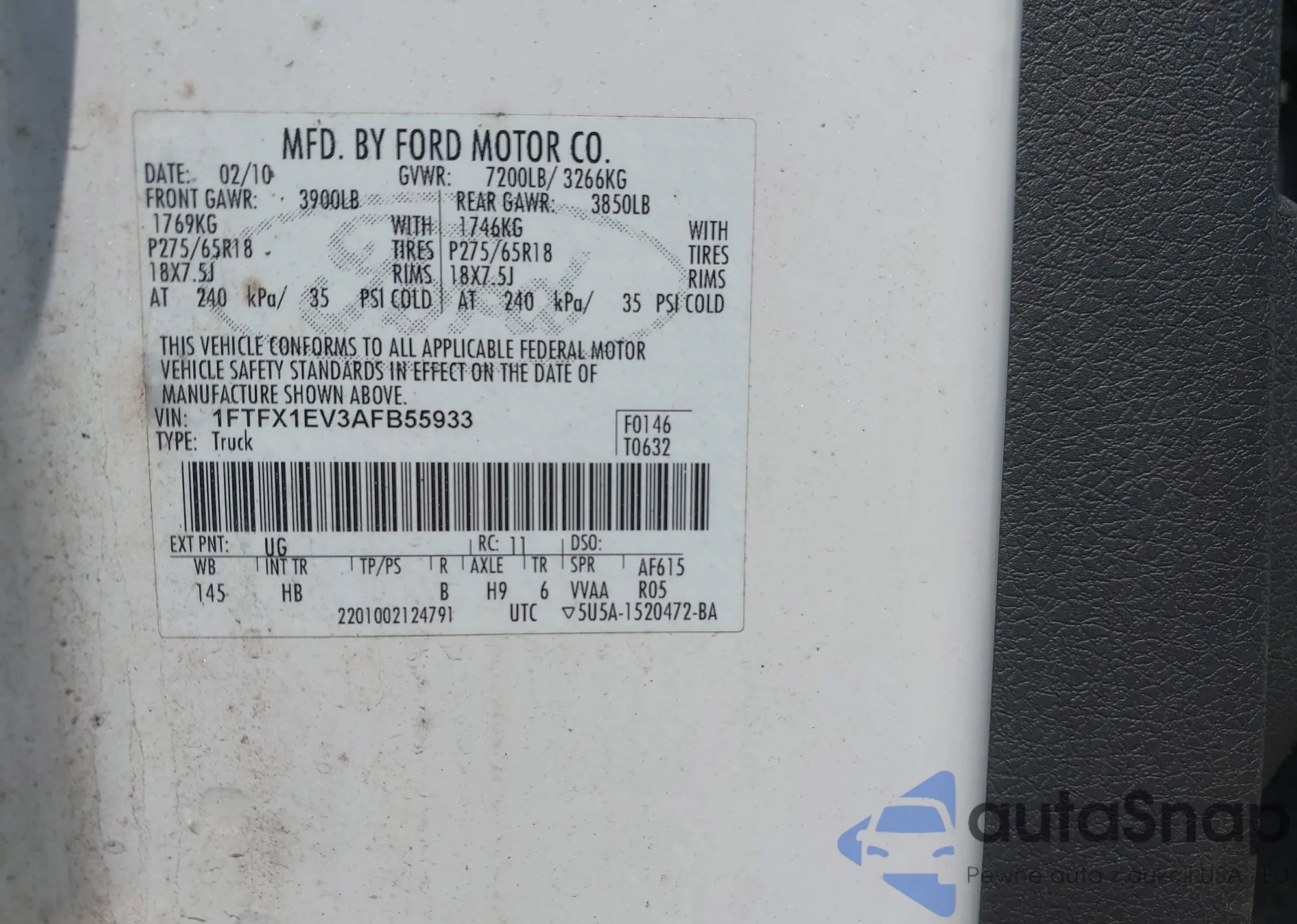 • VIN 1FTFX1EV3AFB55933
