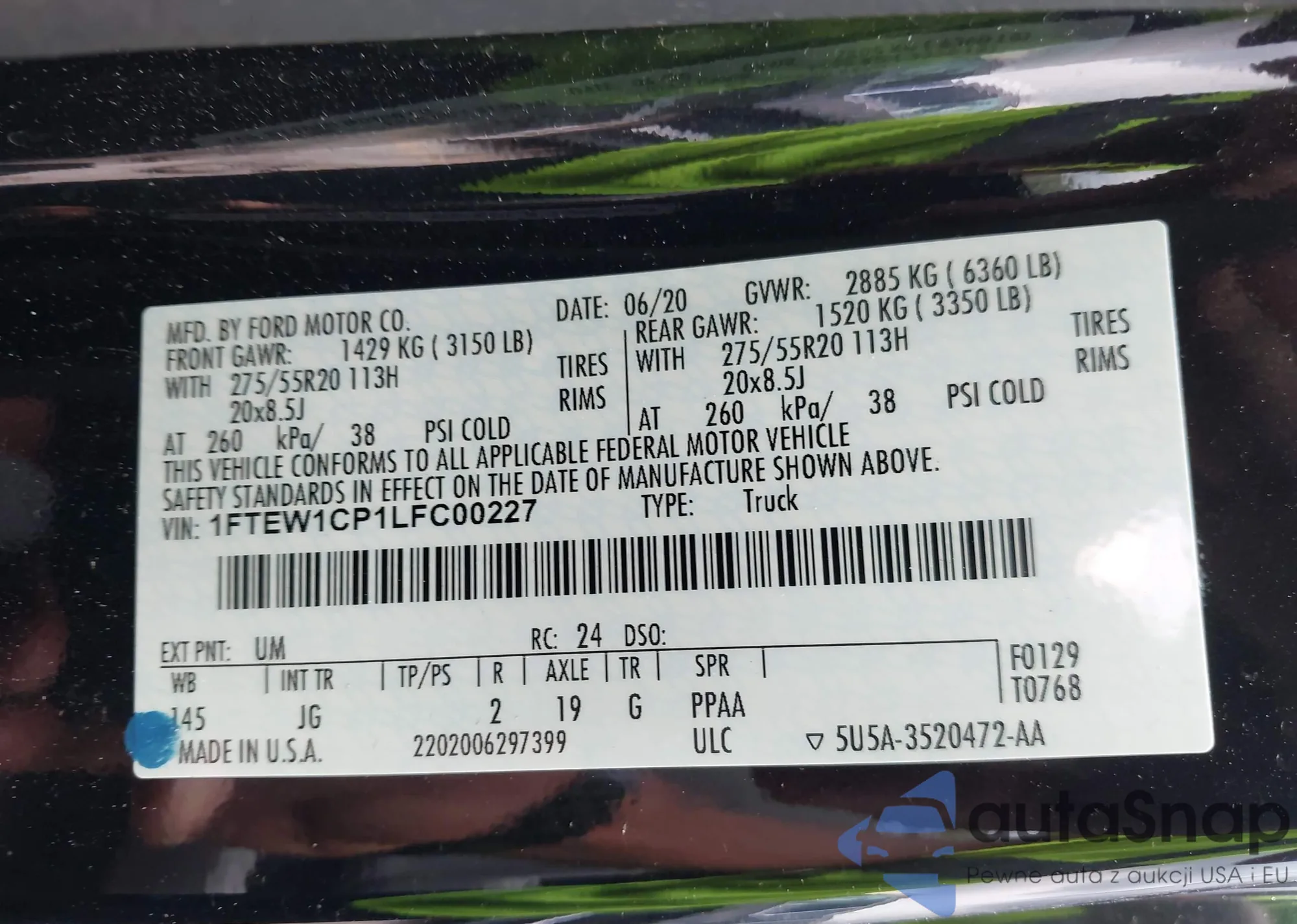 • VIN 1FTEW1CP1LFC00227
