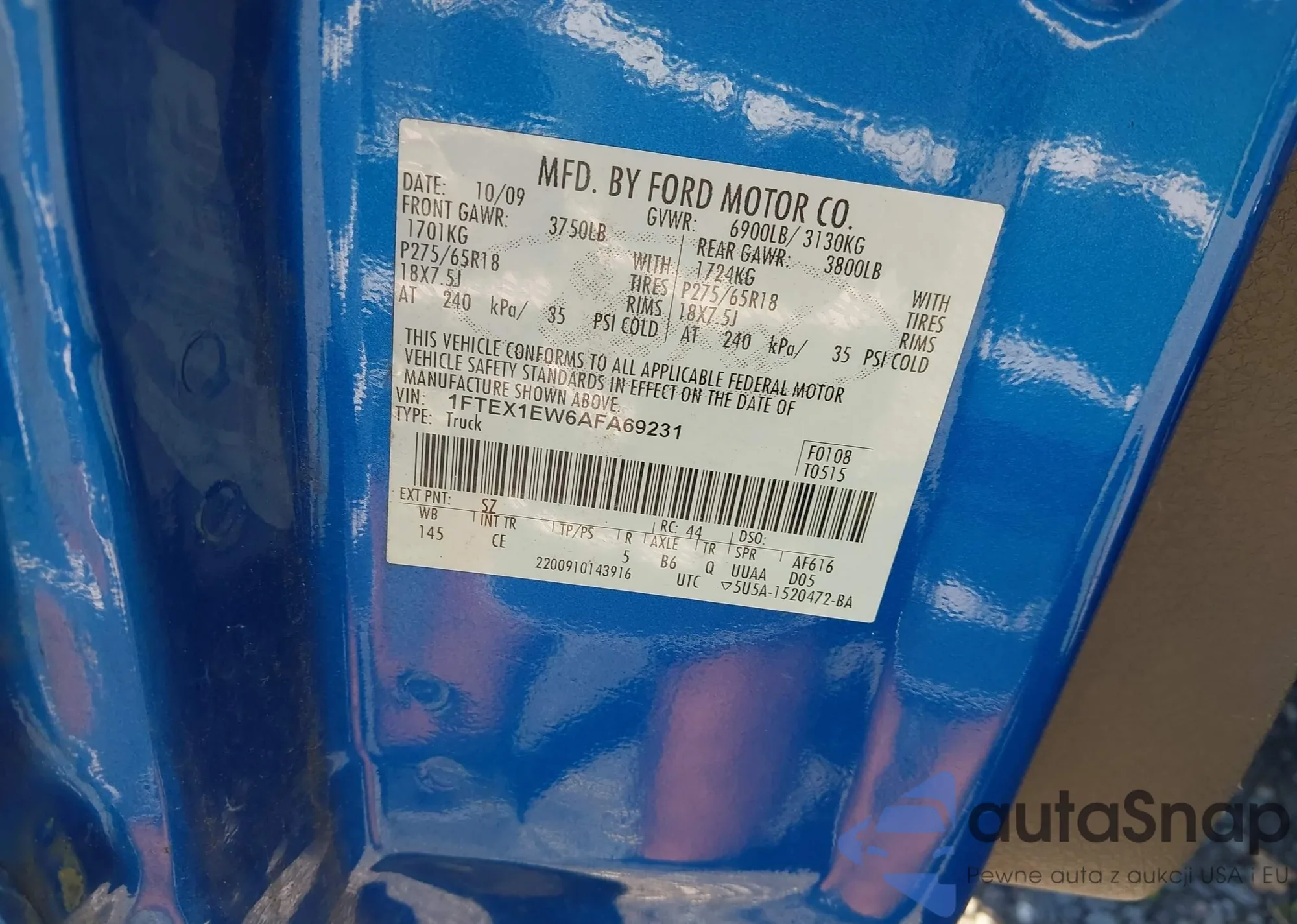 LOT: 43185038 VIN: 1FTEX1EW6AFA69231