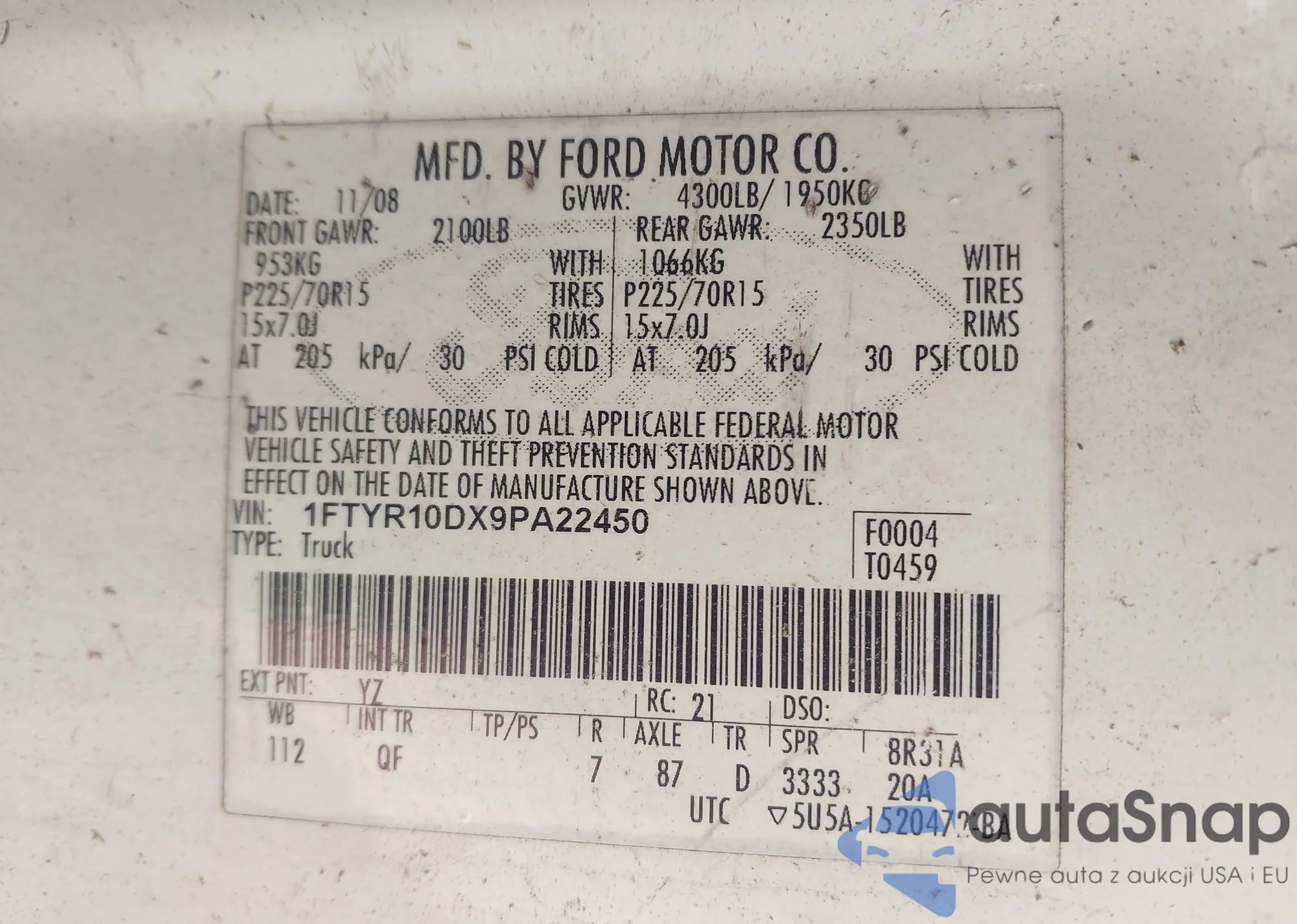 • VIN 1FTYR10DX9PA22450
