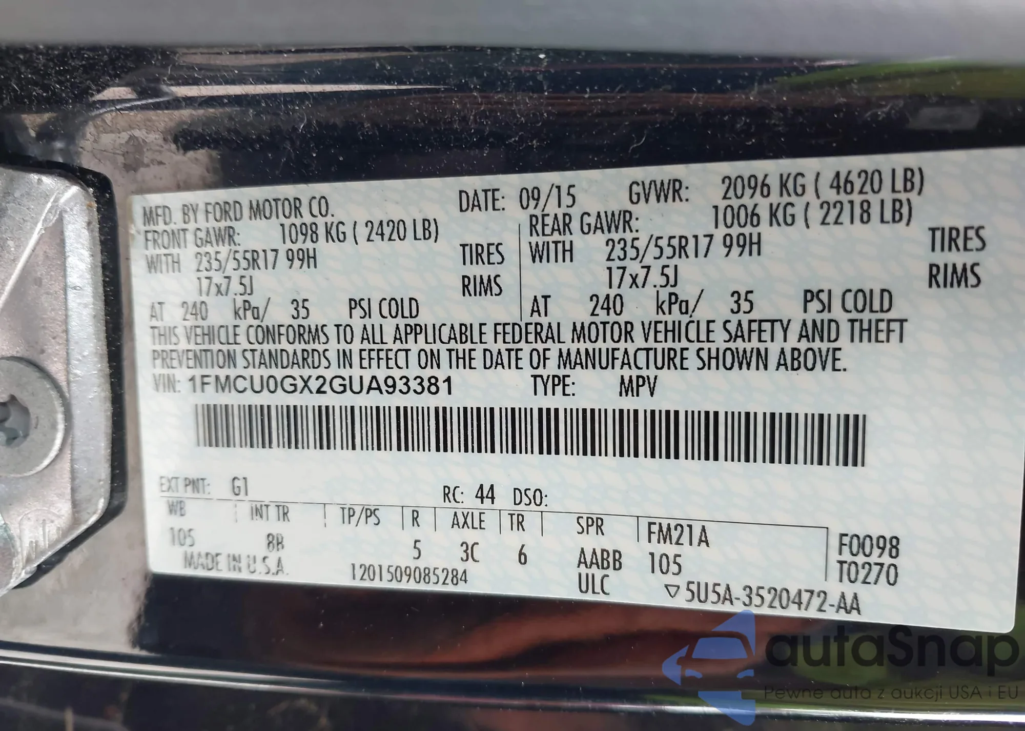 • VIN 1FMCU0GX2GUA93381