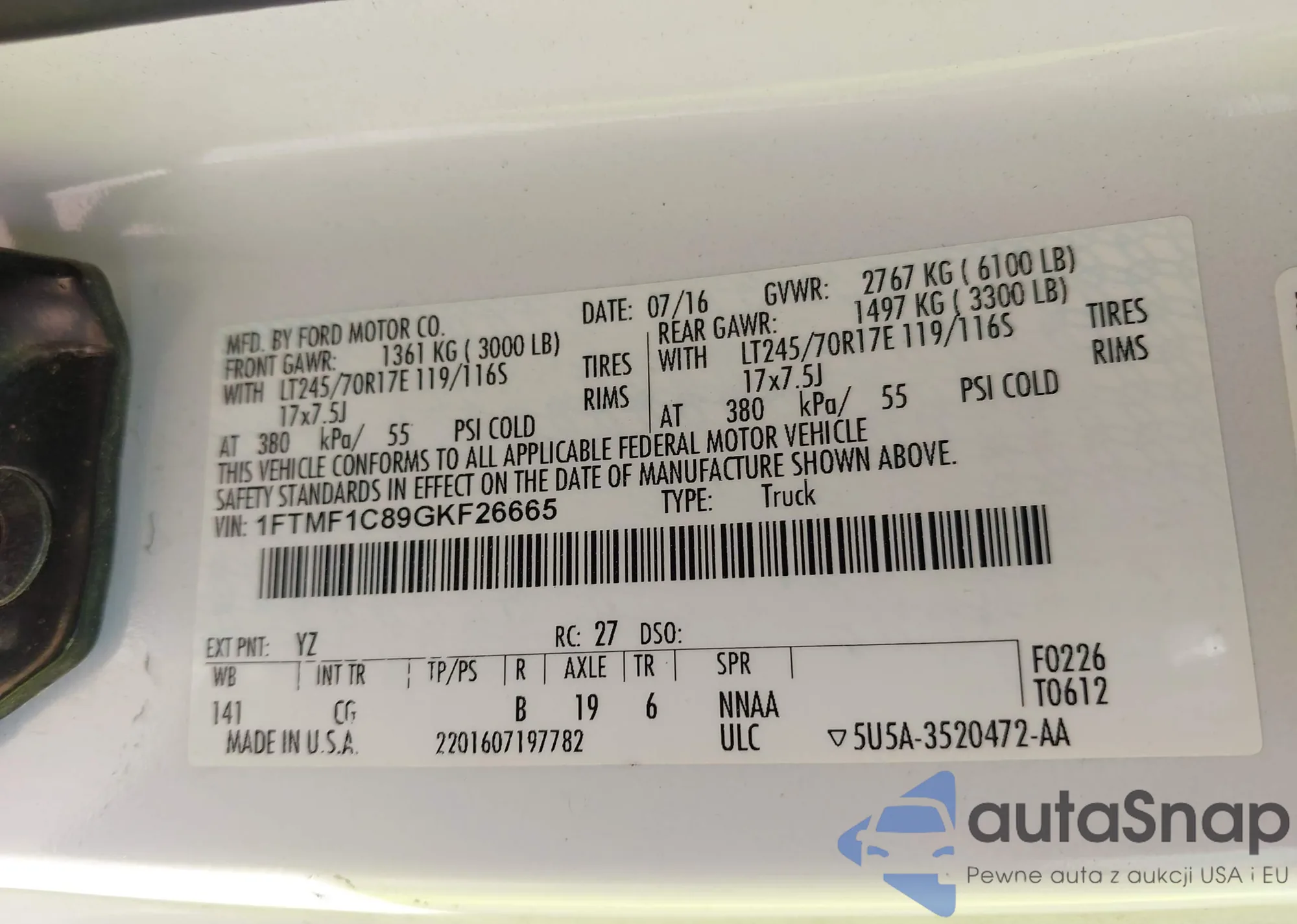 LOT: 42879521 VIN: 1FTMF1C89GKF26665