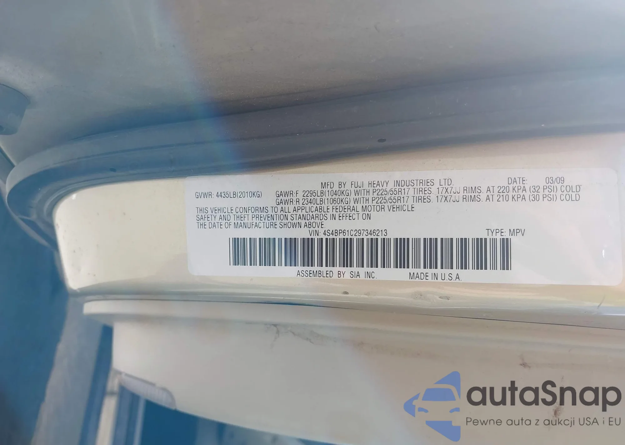 • VIN 4S4BRBJC1B3433228