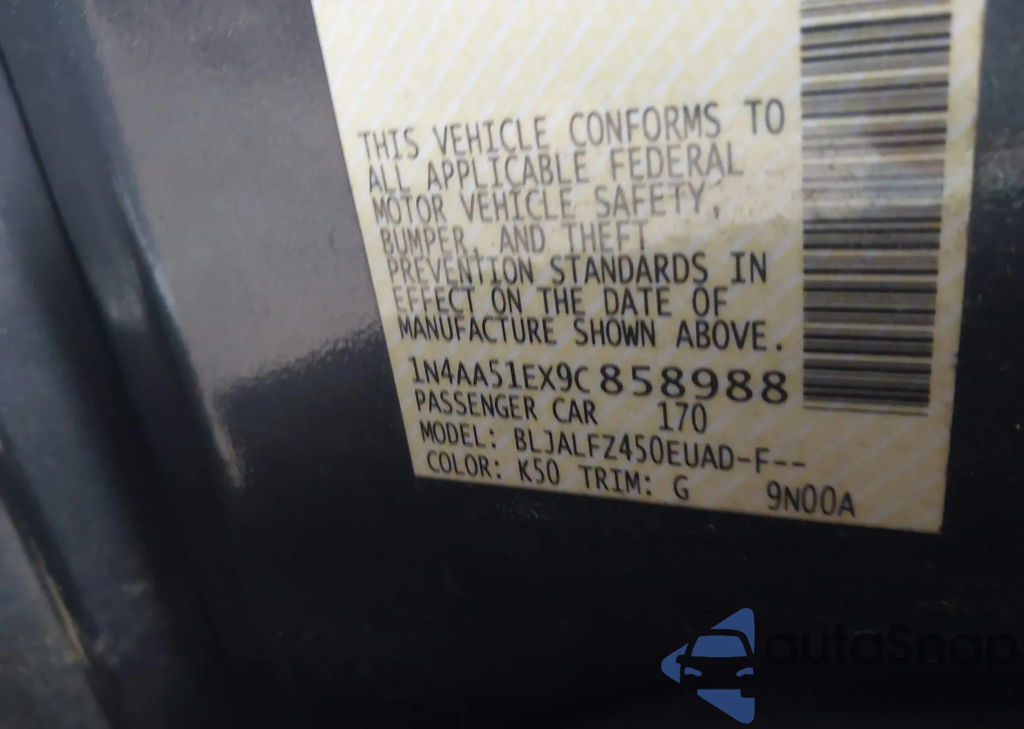 • VIN 1N4AA51EX9C858988