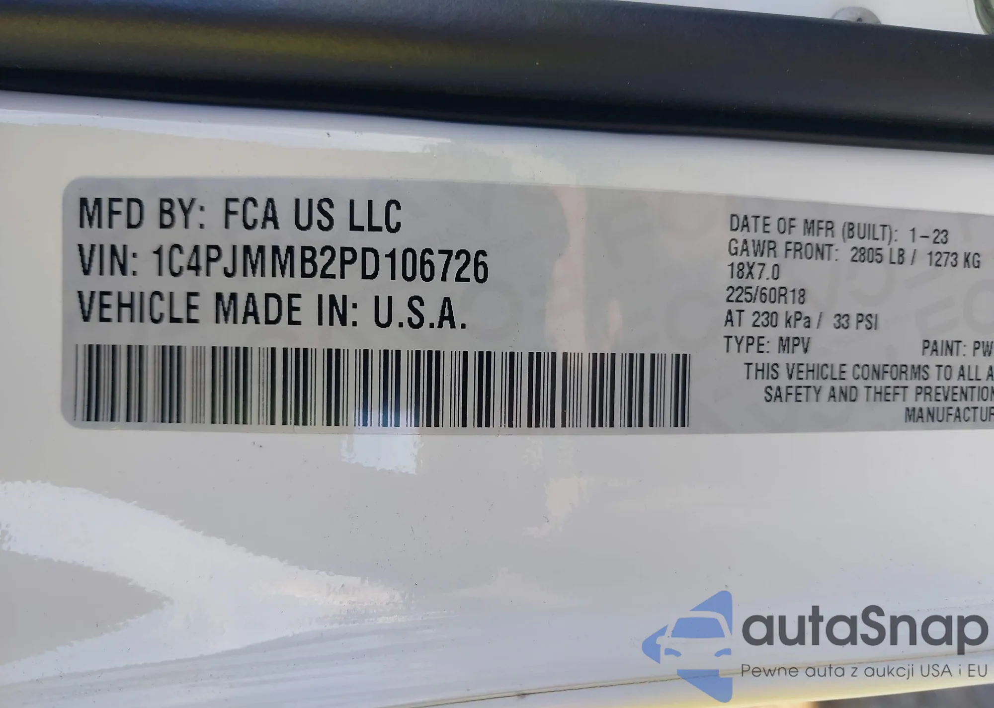 • VIN 1C4PJMMB2PD106726