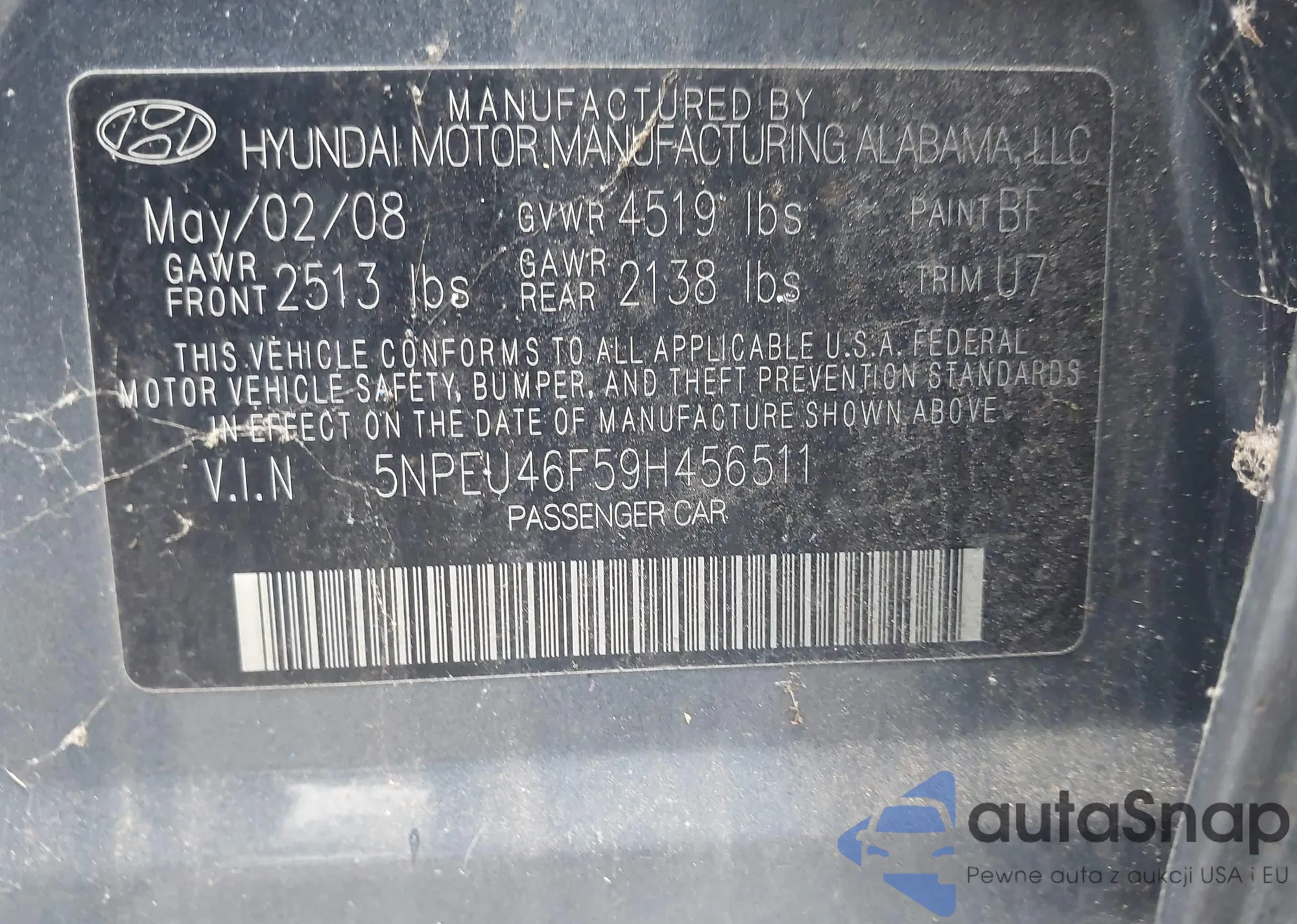 • VIN 5NPEU46F59H456511