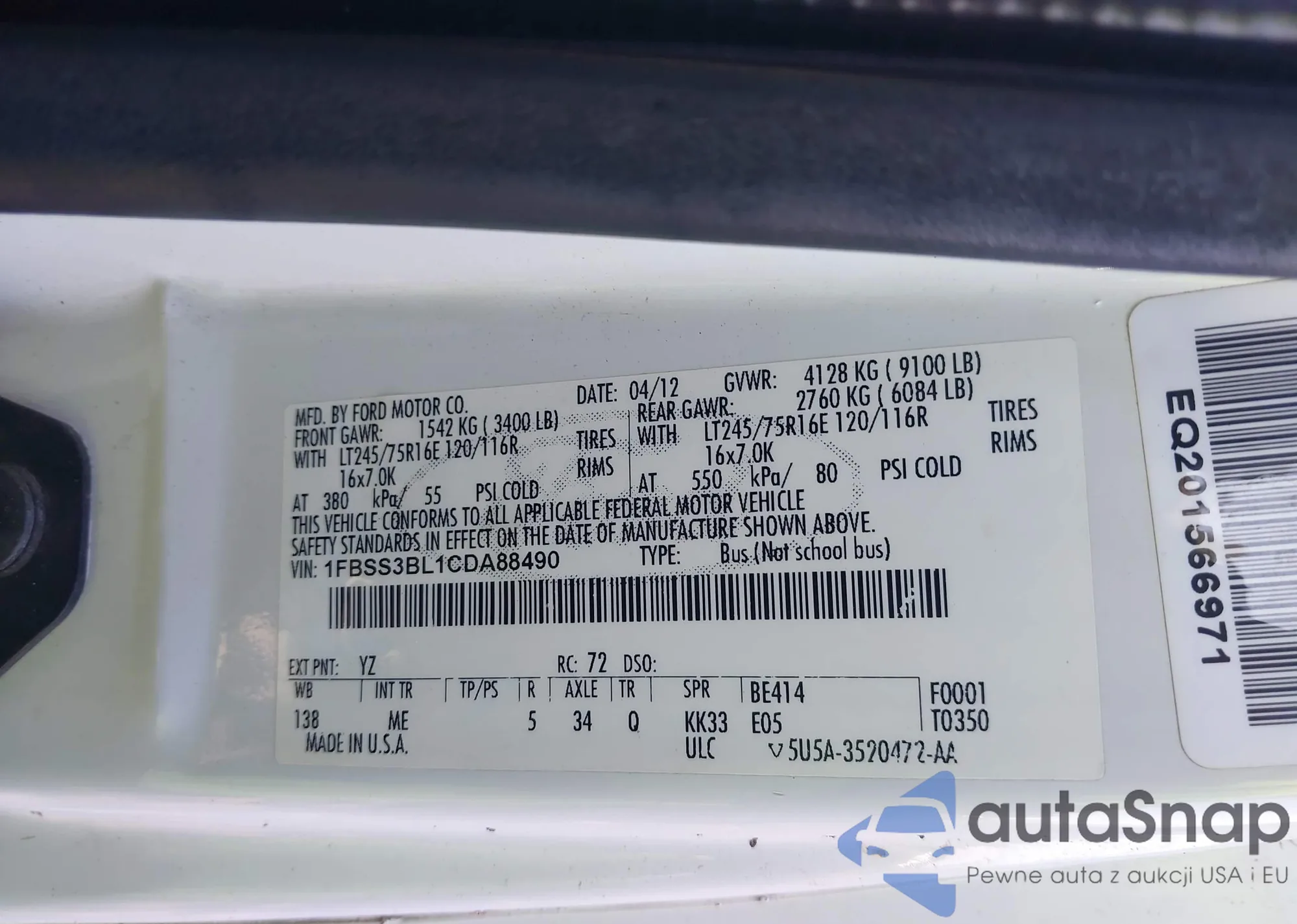 • VIN 1FBSS3BL1CDA88490