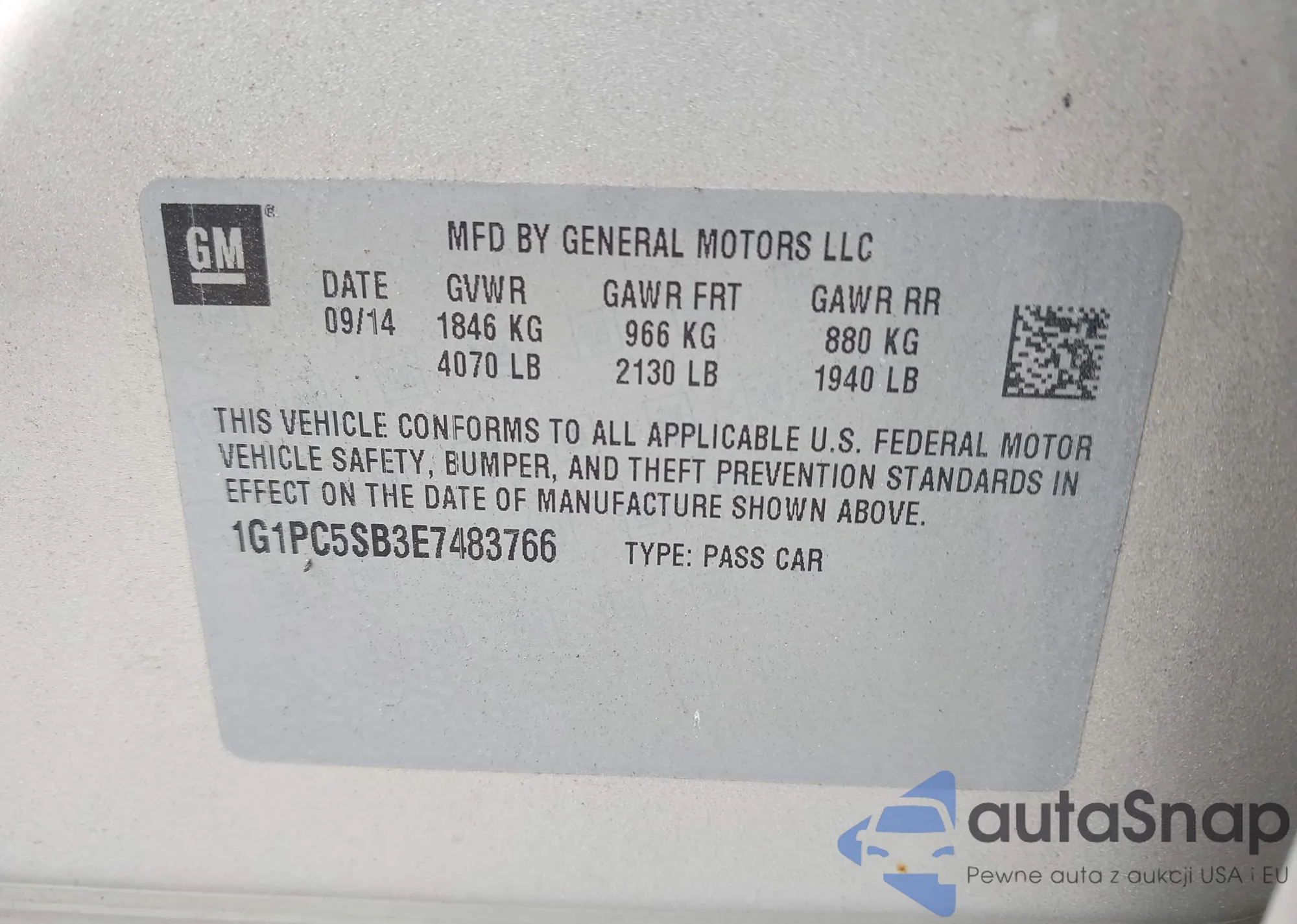 LOT: 43143540 VIN: 1G1PC5SB3E7483766