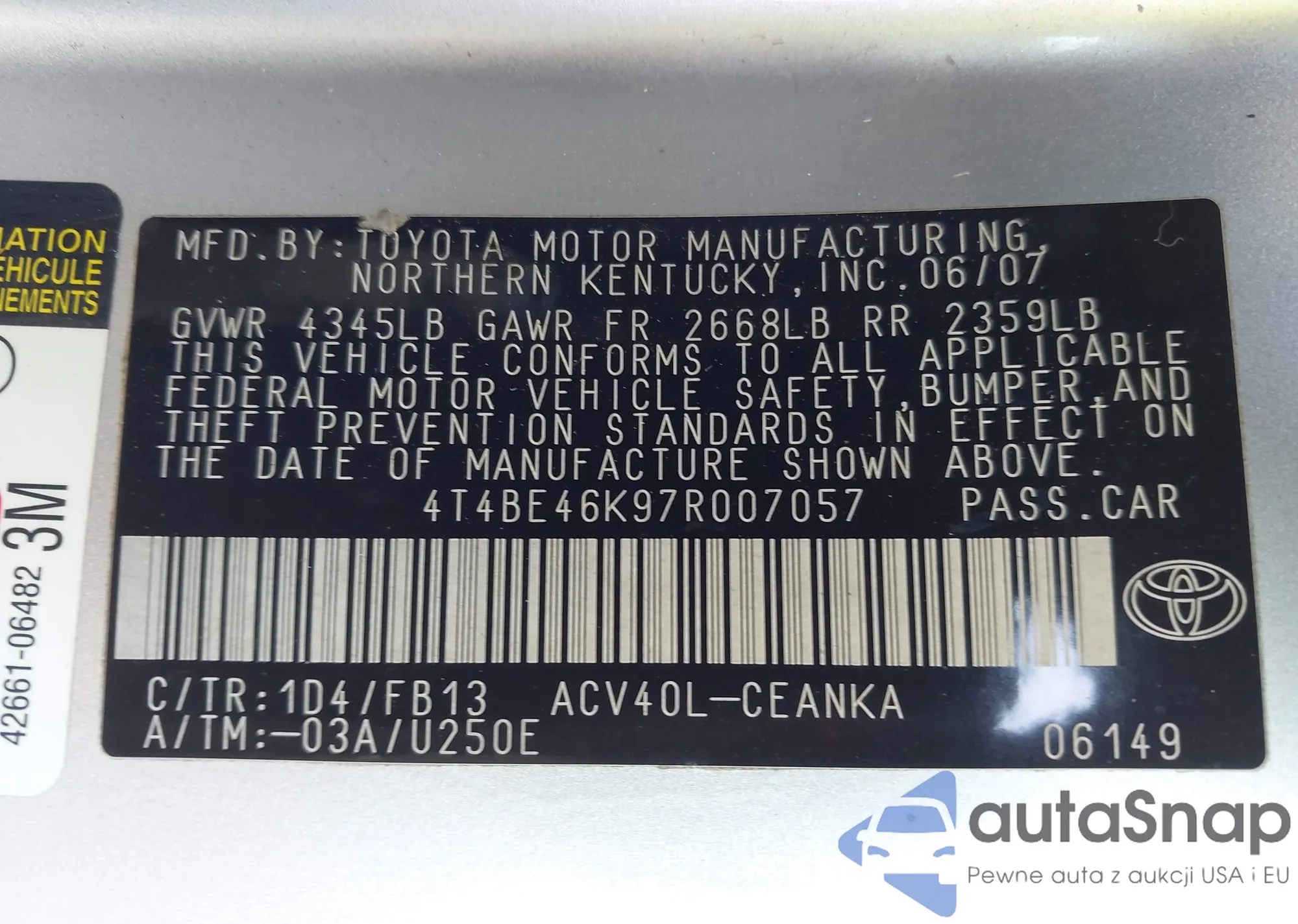 • VIN 4T4BE46K97R007057