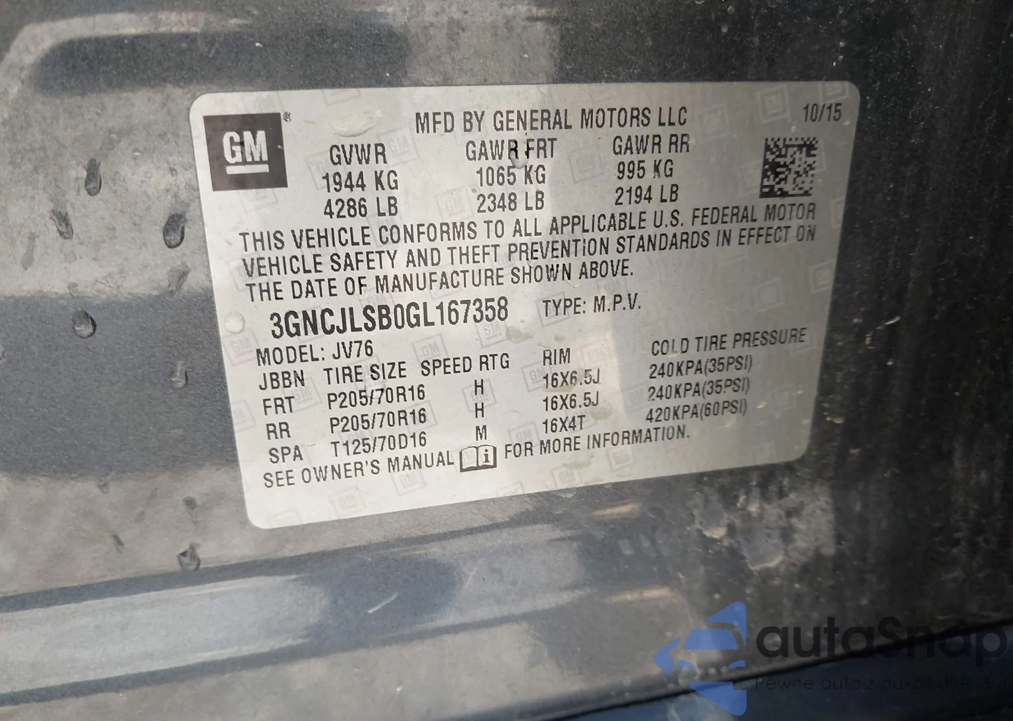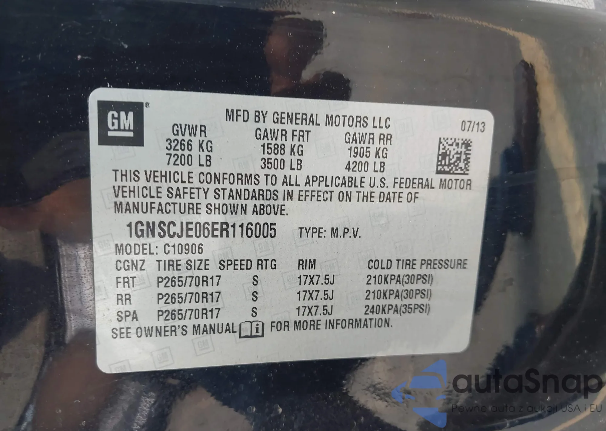 LOT: 42811502 VIN: 1GNSCJE06ER116005