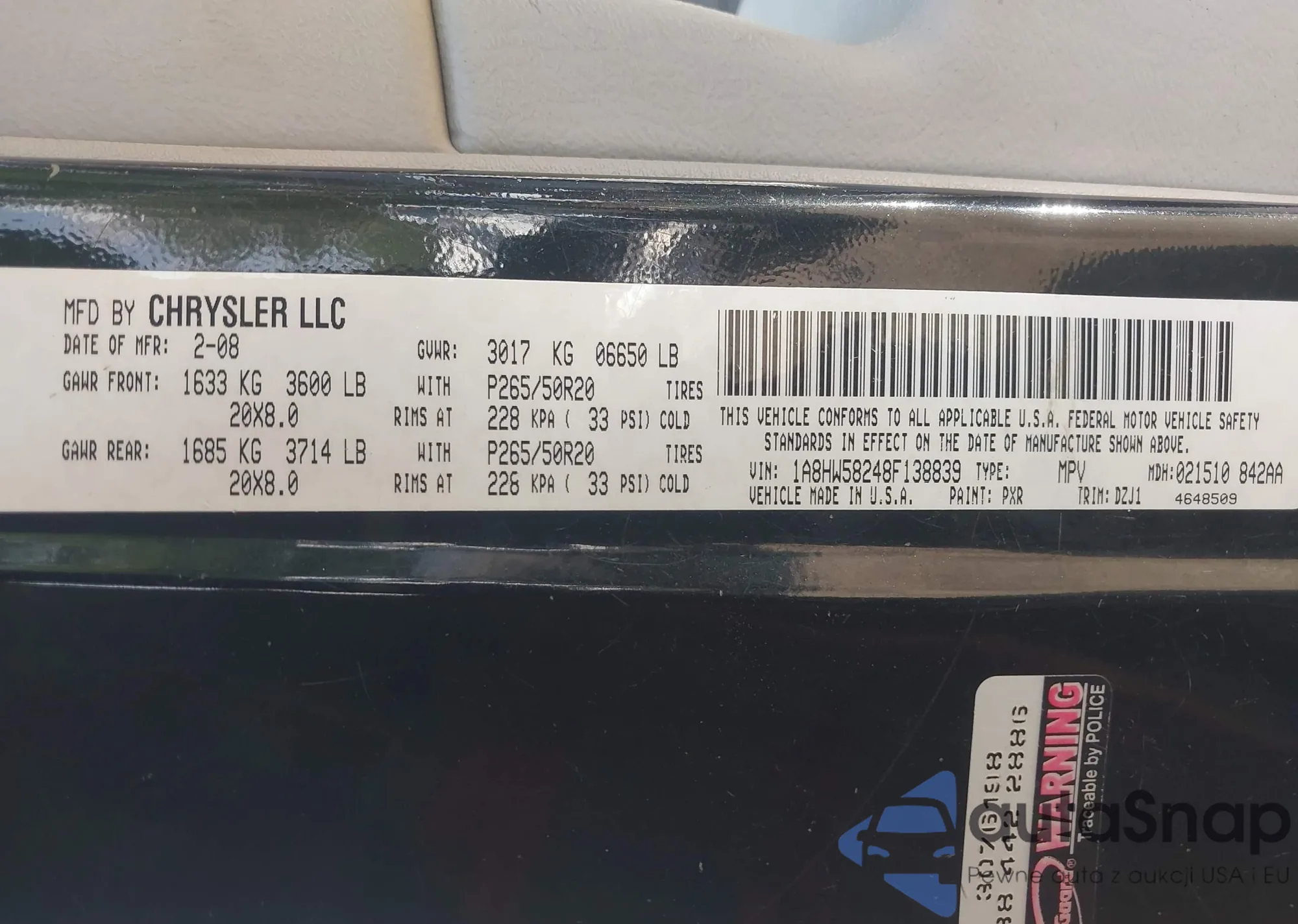 LOT: 42814894 VIN: 2B3KA43G56H233061