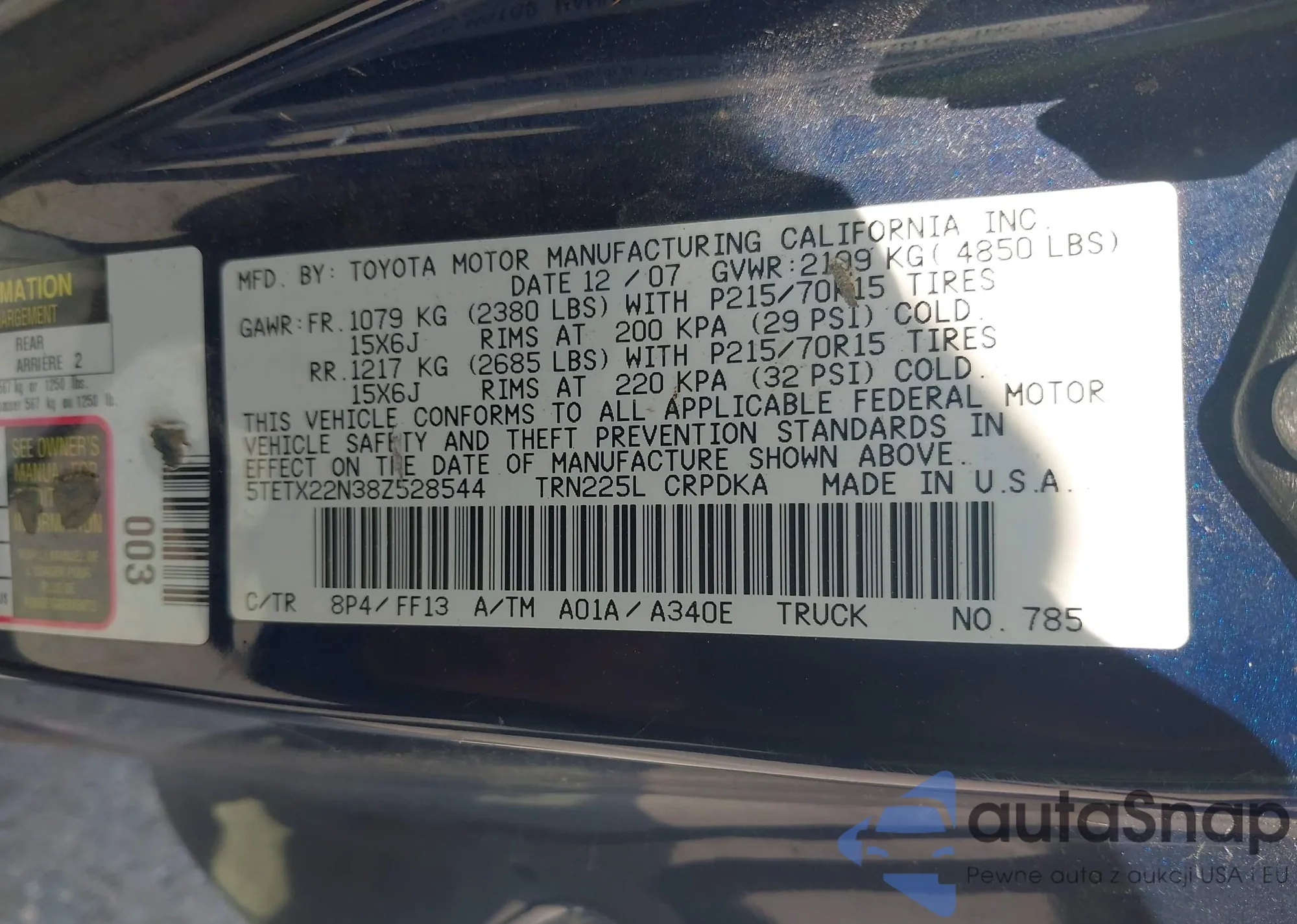 • VIN 5TETX22N38Z528544