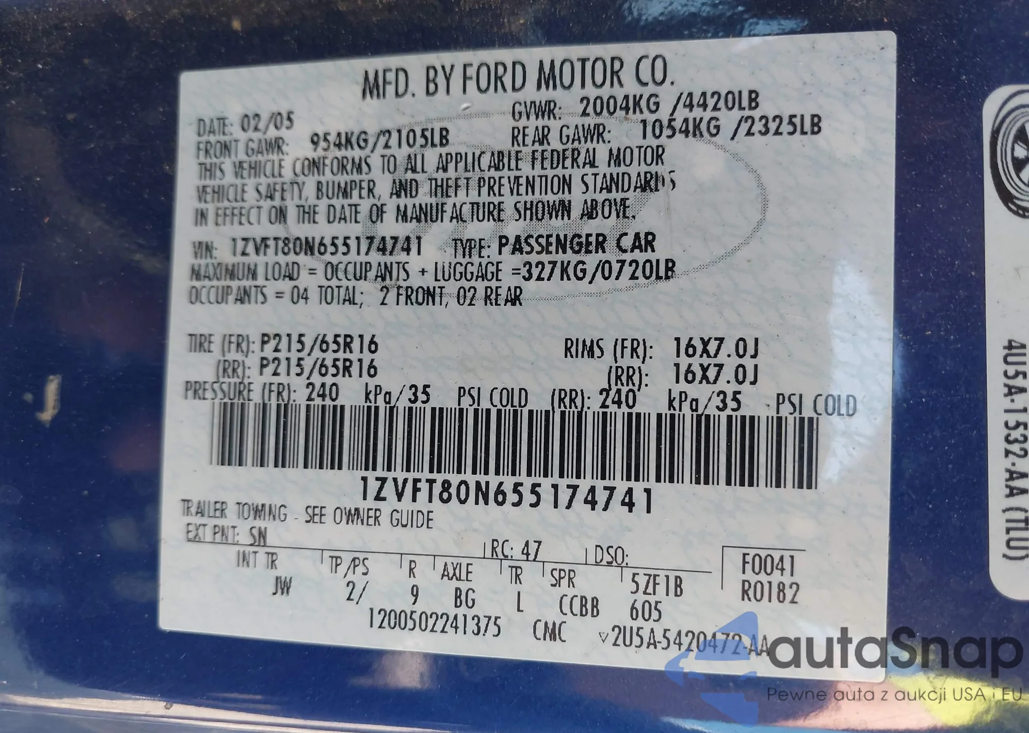 LOT: 42780905 VIN: 1FAFP34N36W245335