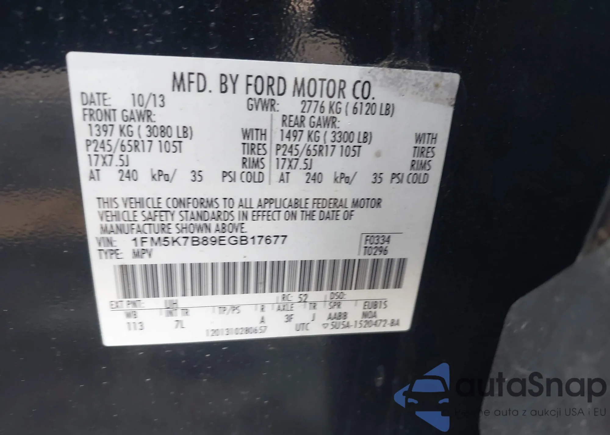 LOT: 41732878 VIN: 1FM5K7B89EGB17677