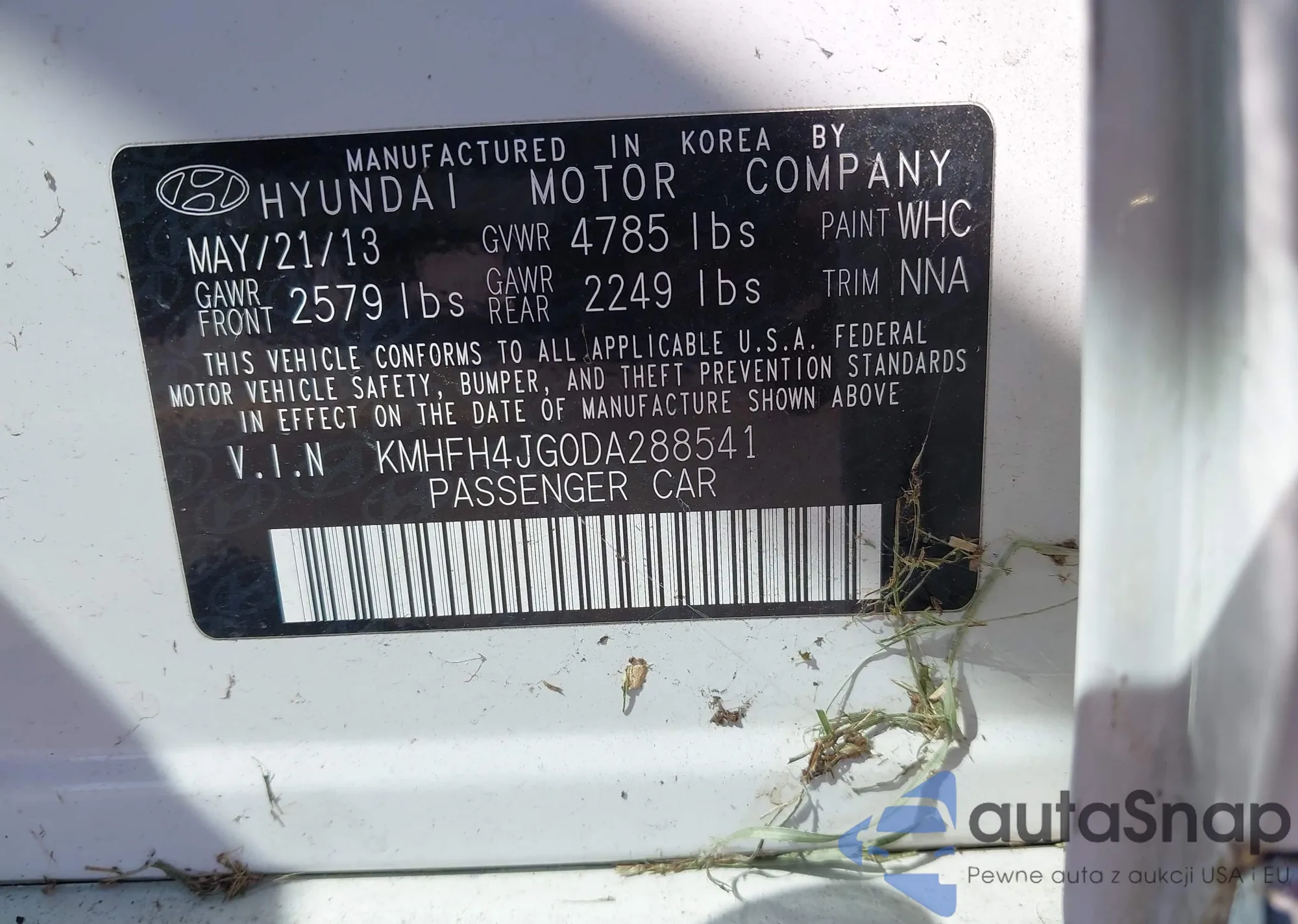 LOT: 42665468 VIN: KMHE34L16GA020777
