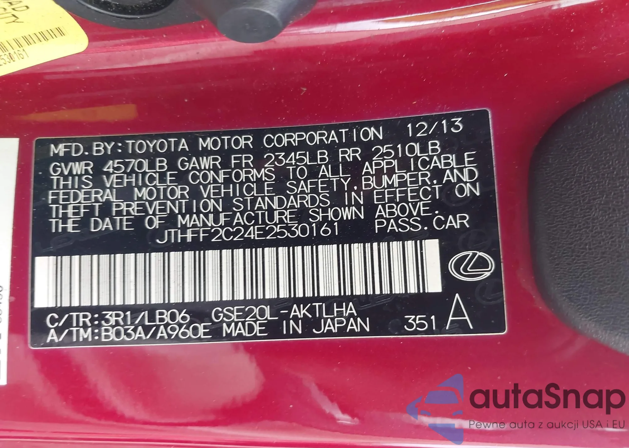 LOT: 43116793 VIN: SAJWA79C05SG39878