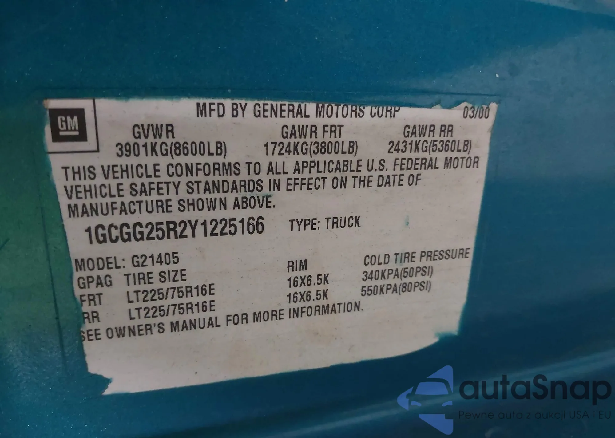 • VIN 1GCGG25R2Y1225166