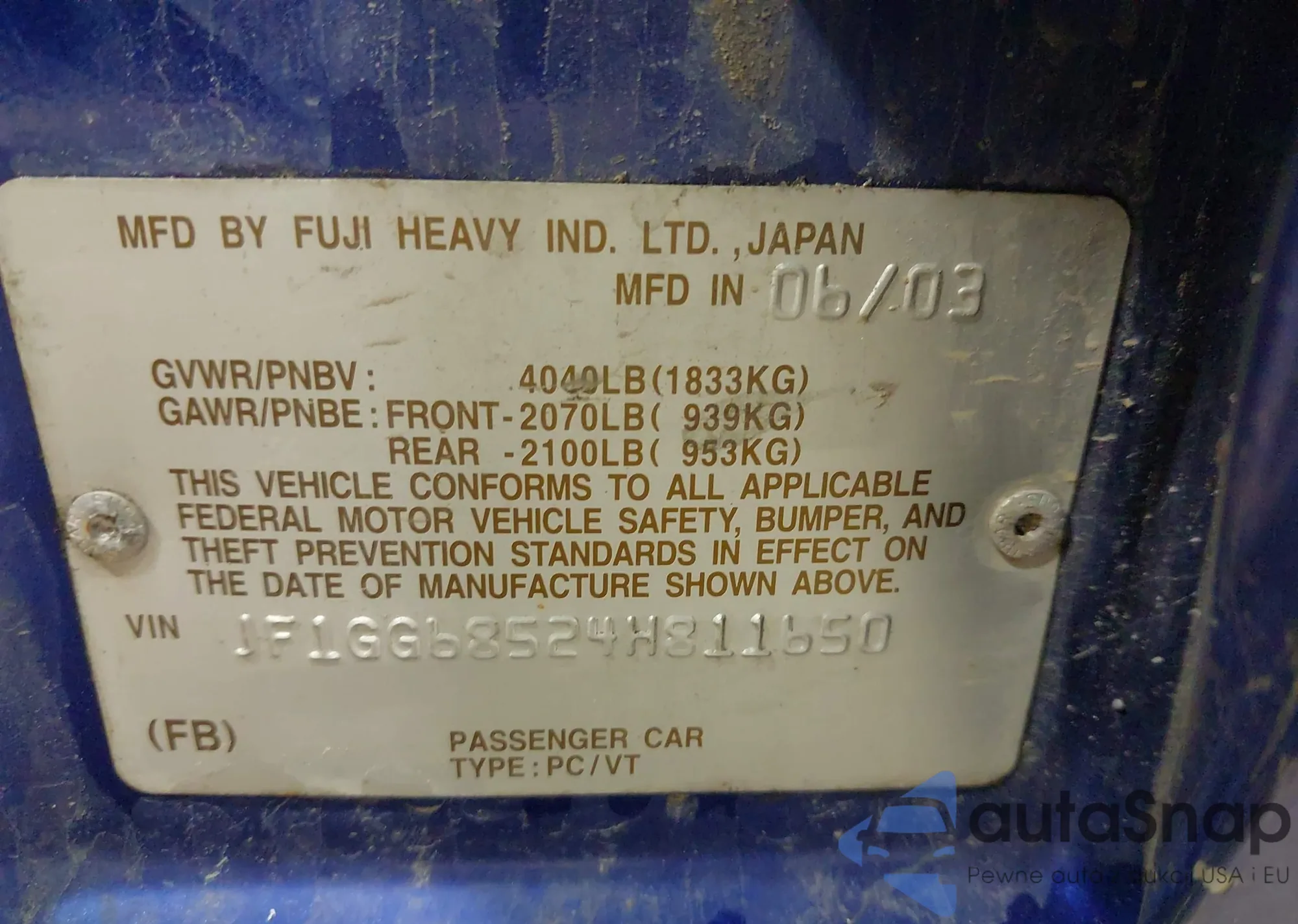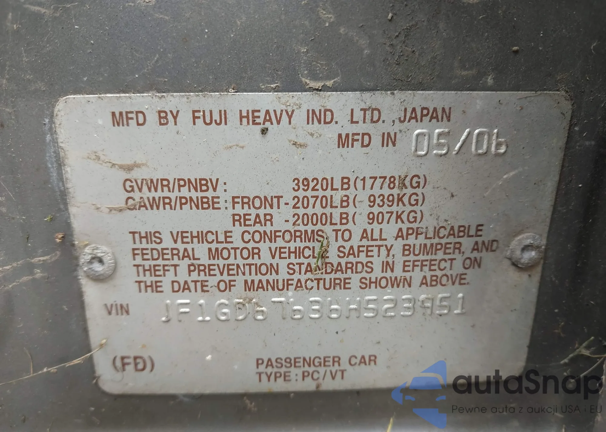 LOT: 42929790 VIN: JF1GD67636H523951