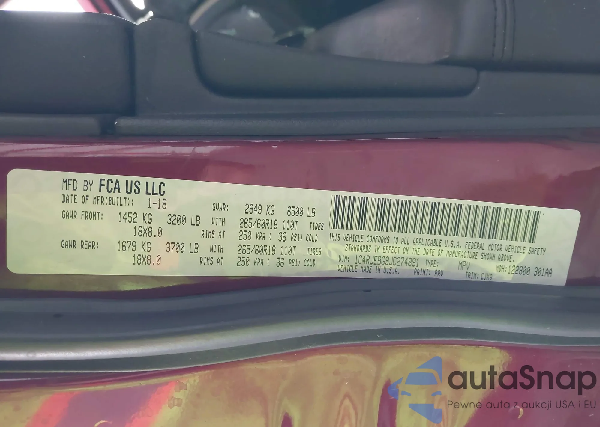 LOT: 43016082 VIN: 1C4RJEBG9JC274891