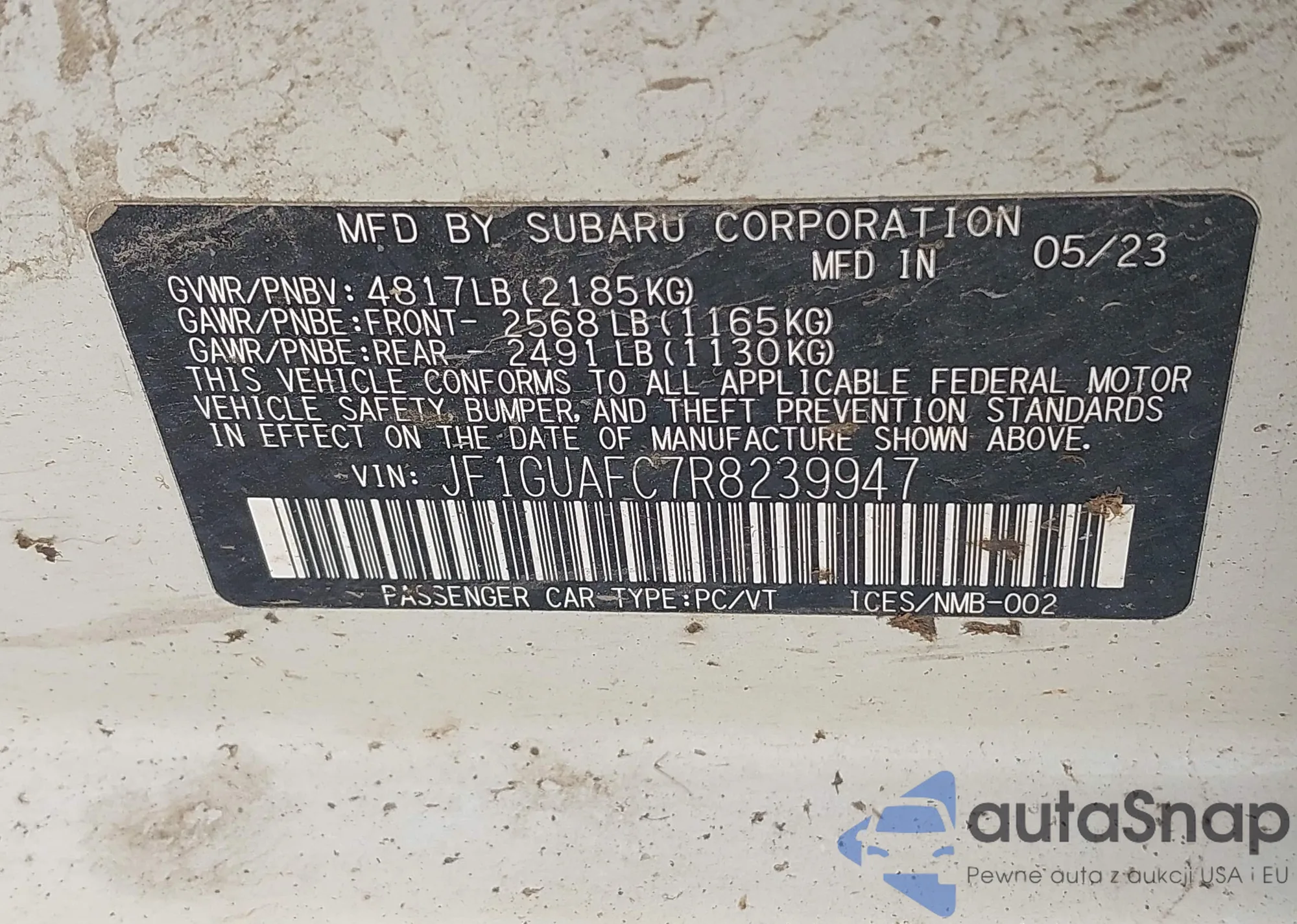LOT: 42874900 VIN: JF1GUAFC7R8239947