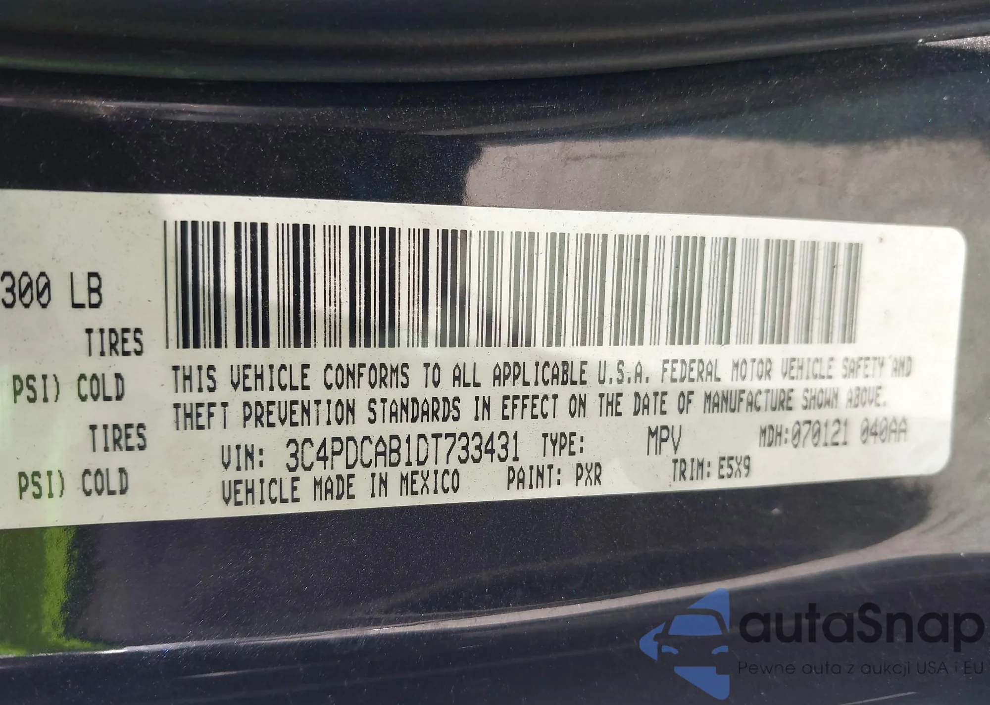 • VIN 3C4PDCAB1DT733431