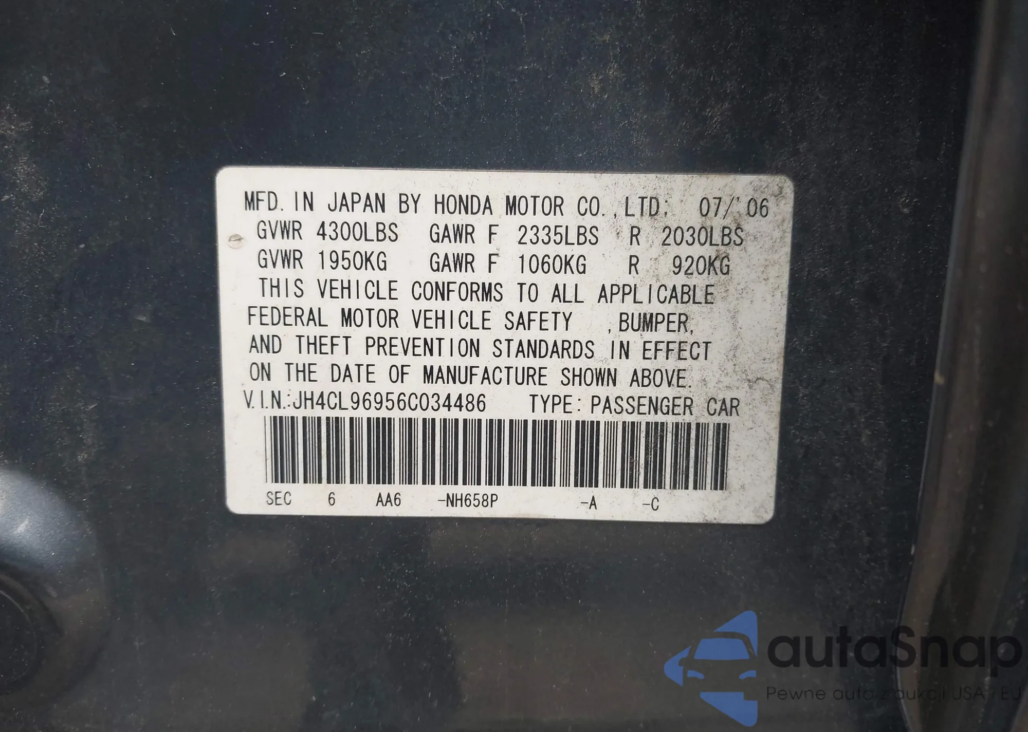 LOT: 43039175 VIN: JH4CL96956C034486