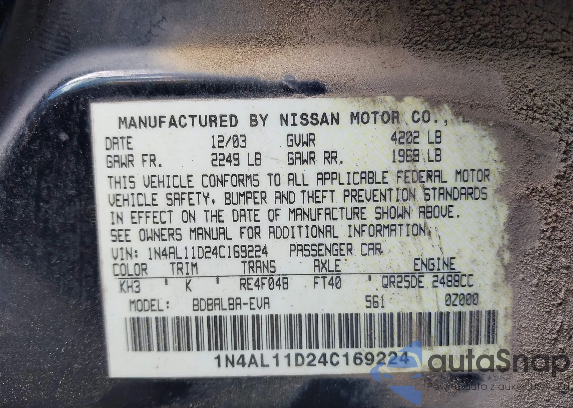• VIN 1N4AL11D24C169224
