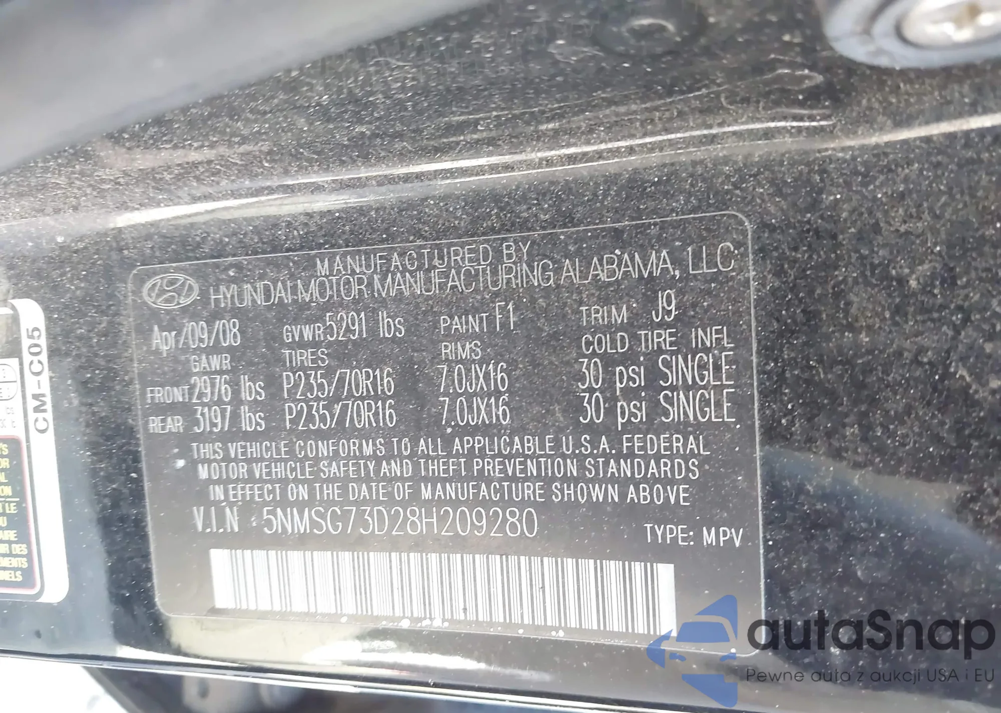 LOT: 43114886 VIN: 5NMSG73D28H209280