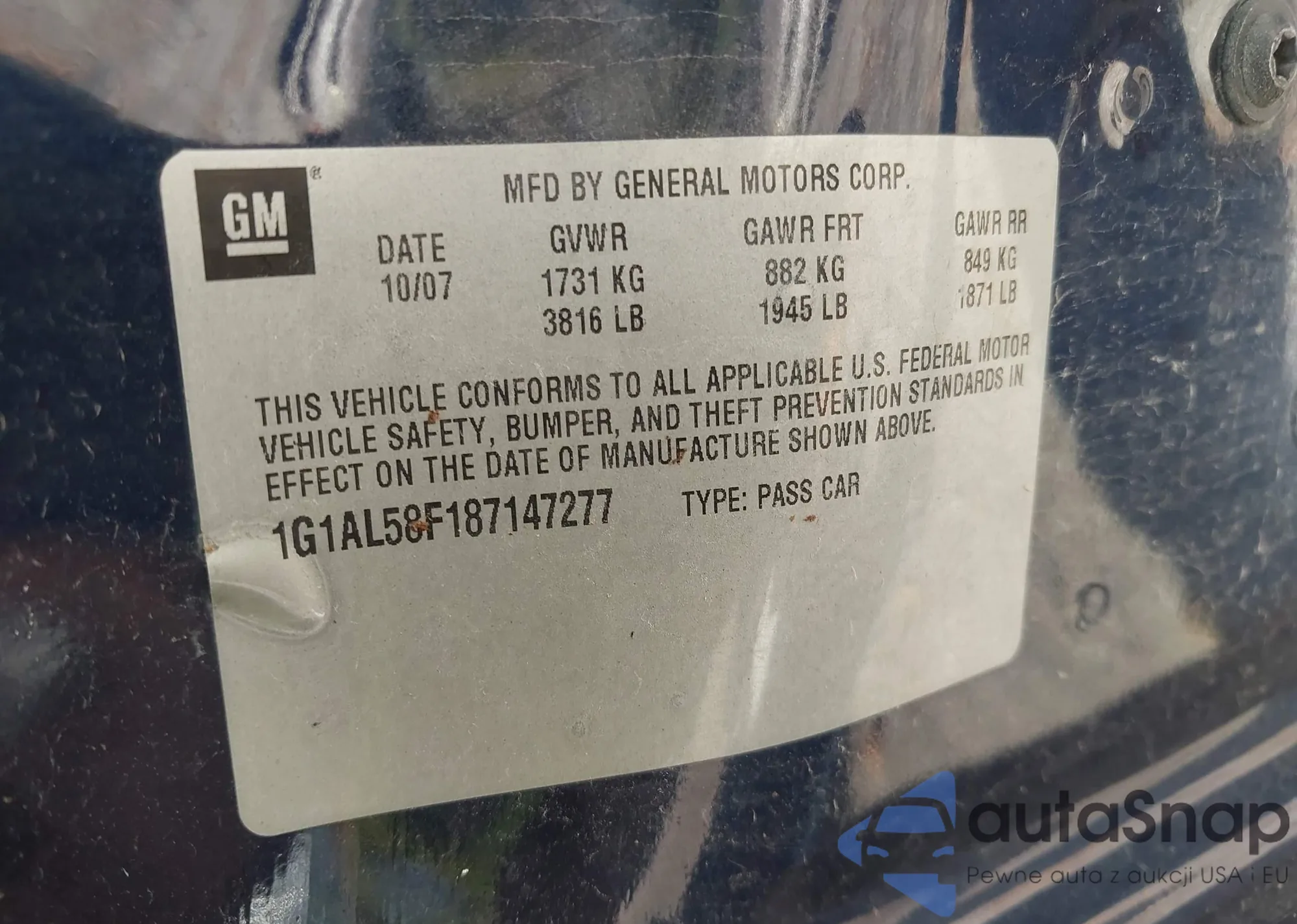• VIN 1G1AL58F187147277