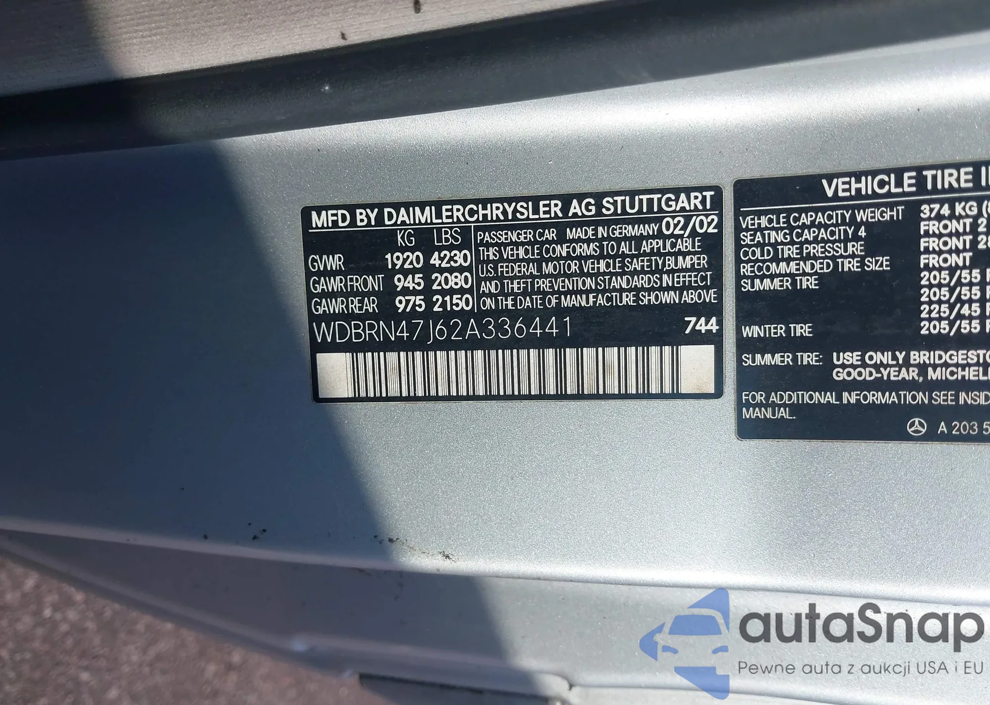 • VIN WDBRN47J62A336441