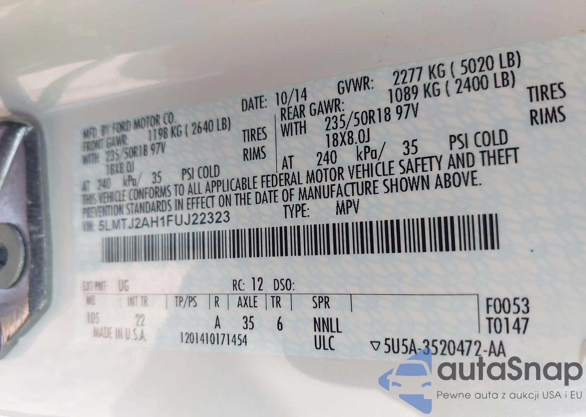 • VIN 5LMTJ2AH1FUJ22323