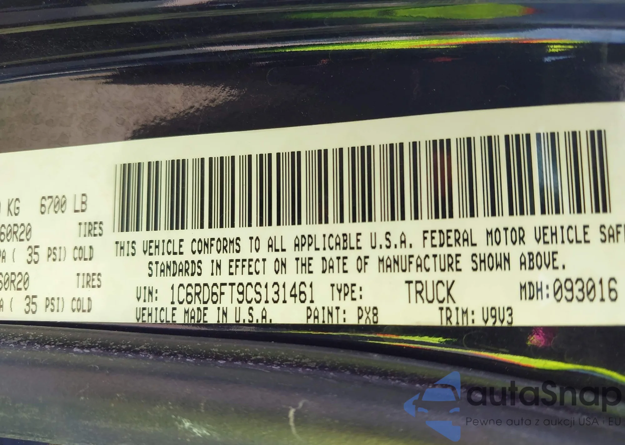• VIN 1C6RD6FT9CS131461