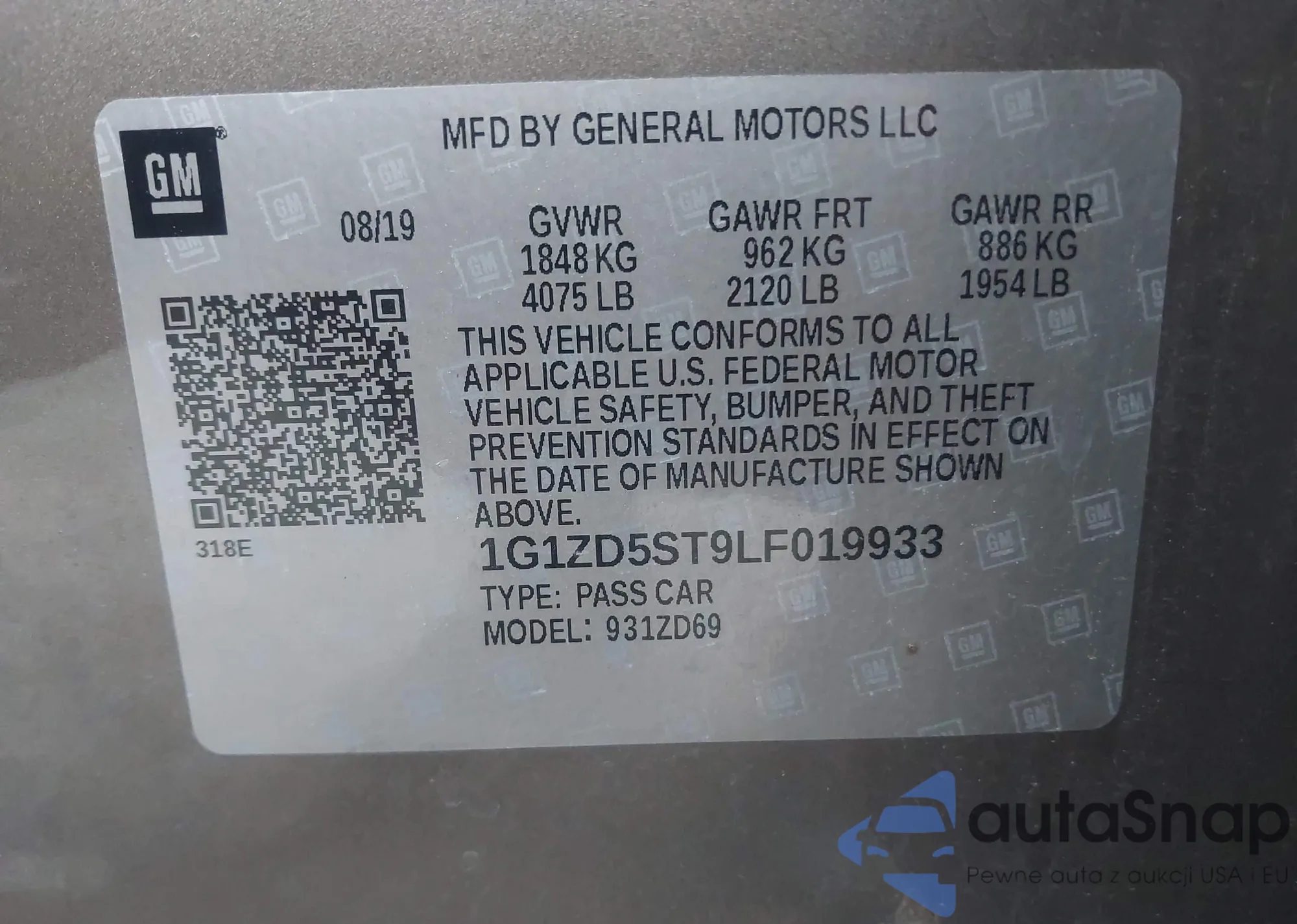 • VIN 1G1ZD5ST9LF019933