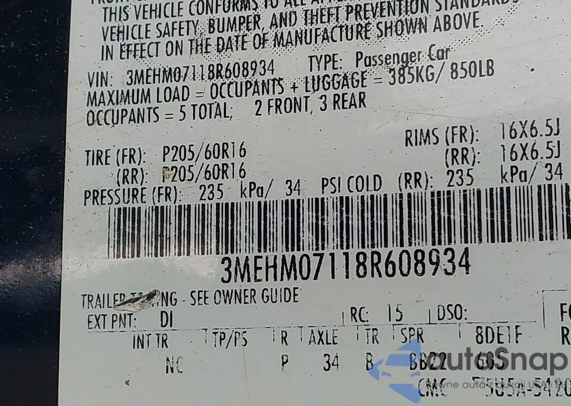 LOT: 42879770 VIN: 3MEHM07118R608934