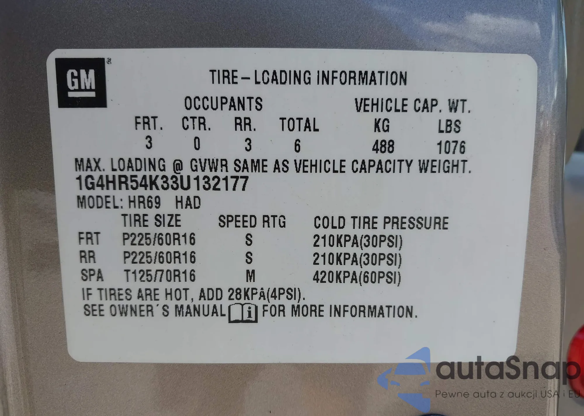 • VIN 1G4HR54K33U132177