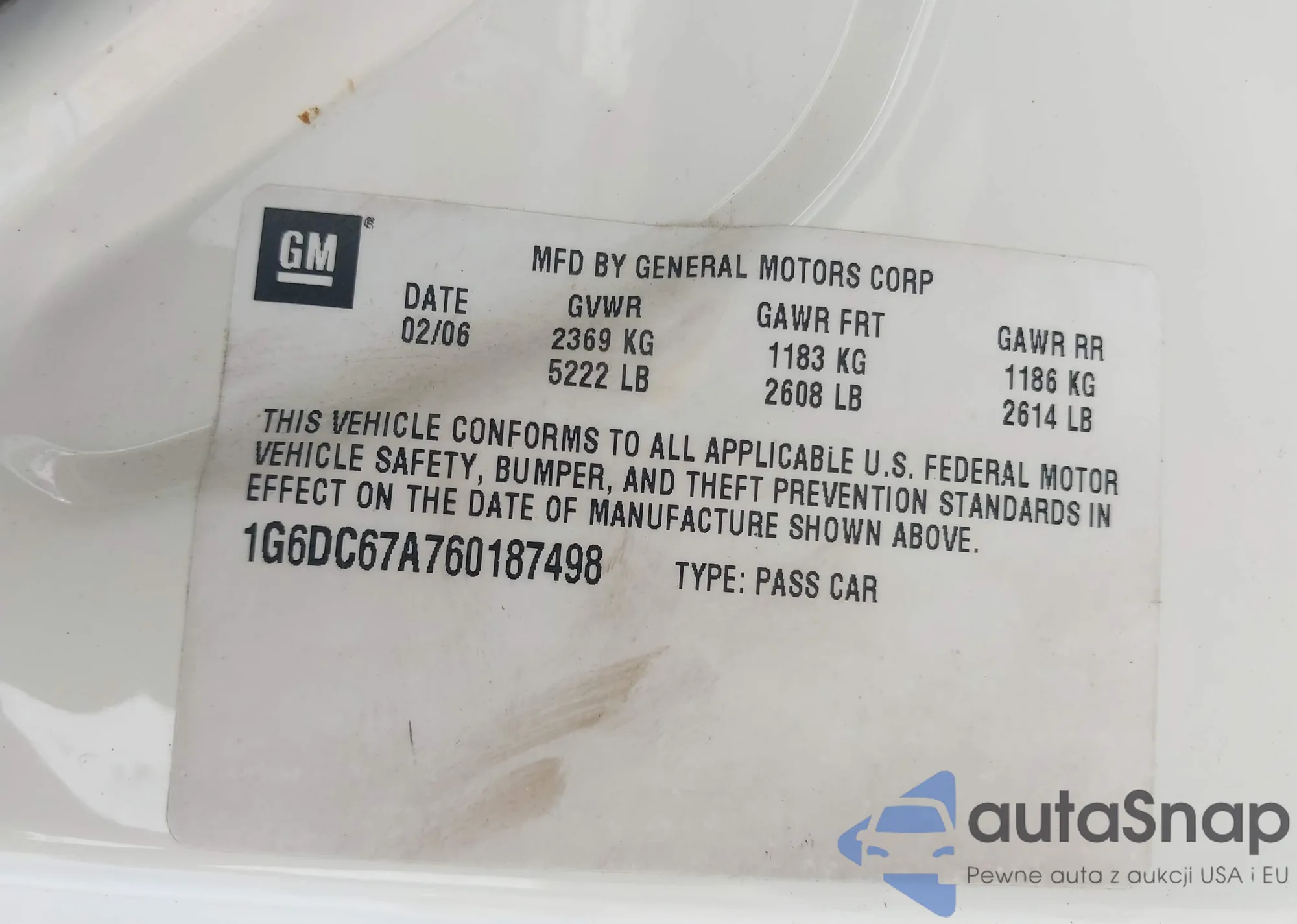 • VIN 1G6DC67A760187498