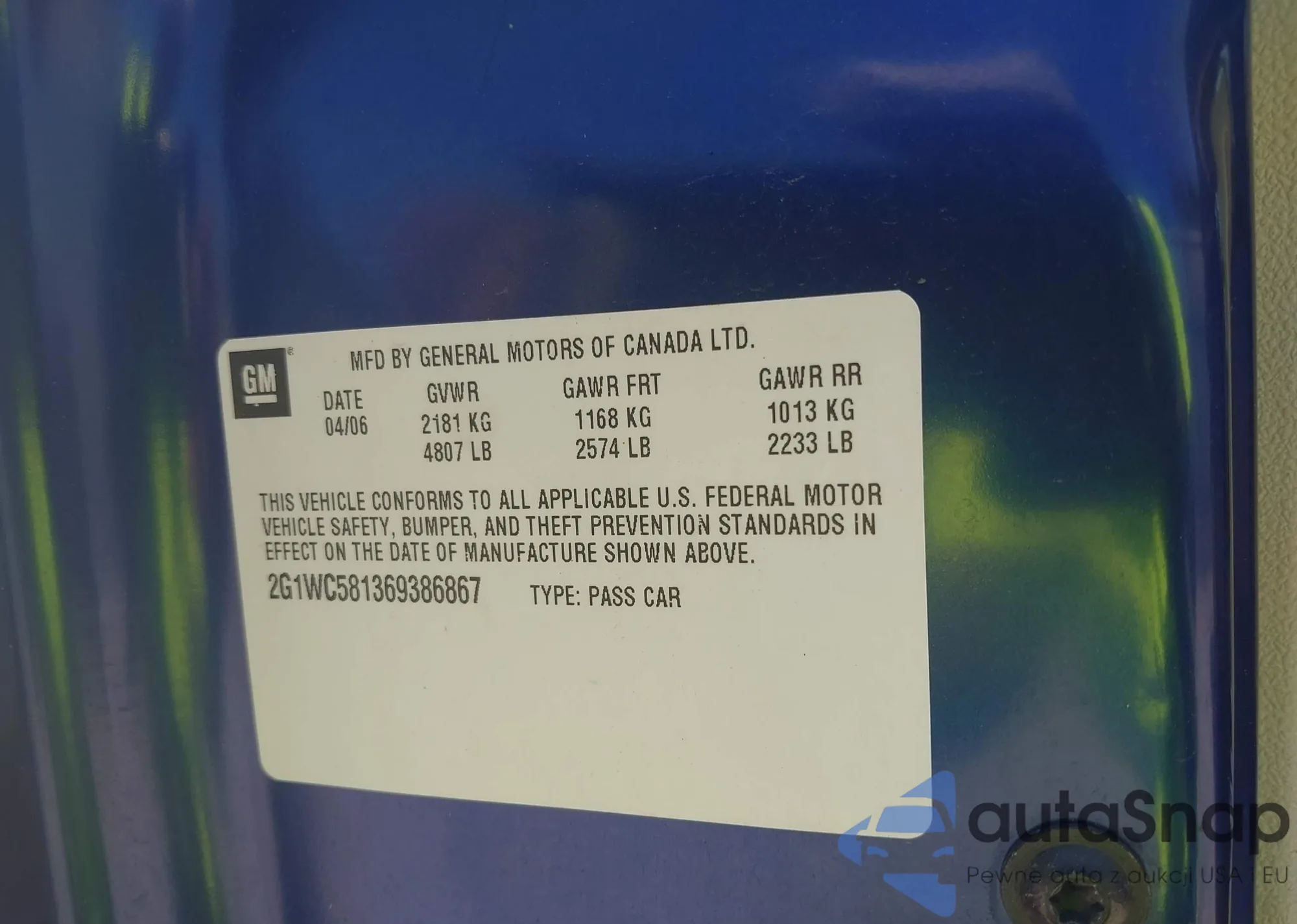 • VIN 2G1WC581369386867