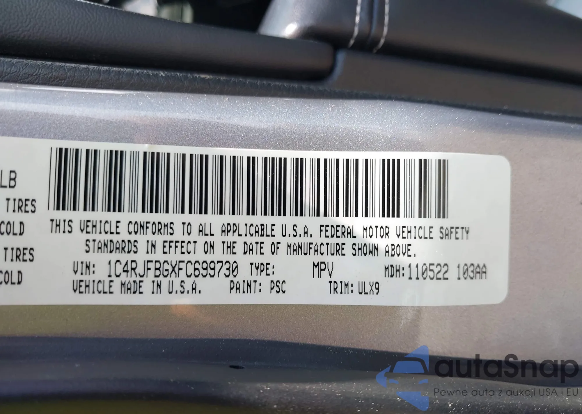 • VIN 1C4RJFBGXFC699730