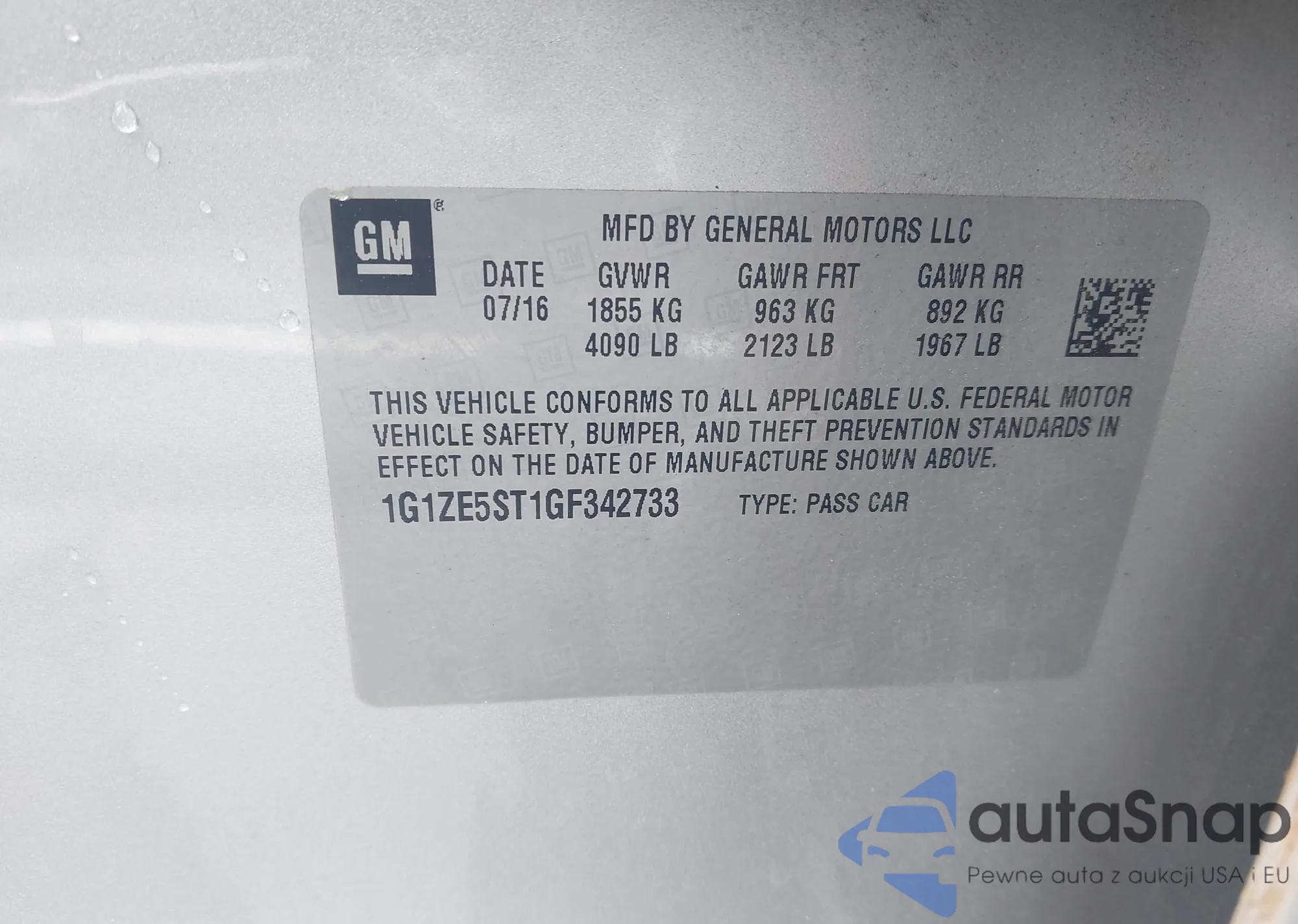 LOT: 42981261 VIN: 2G1WT55NX79337643
