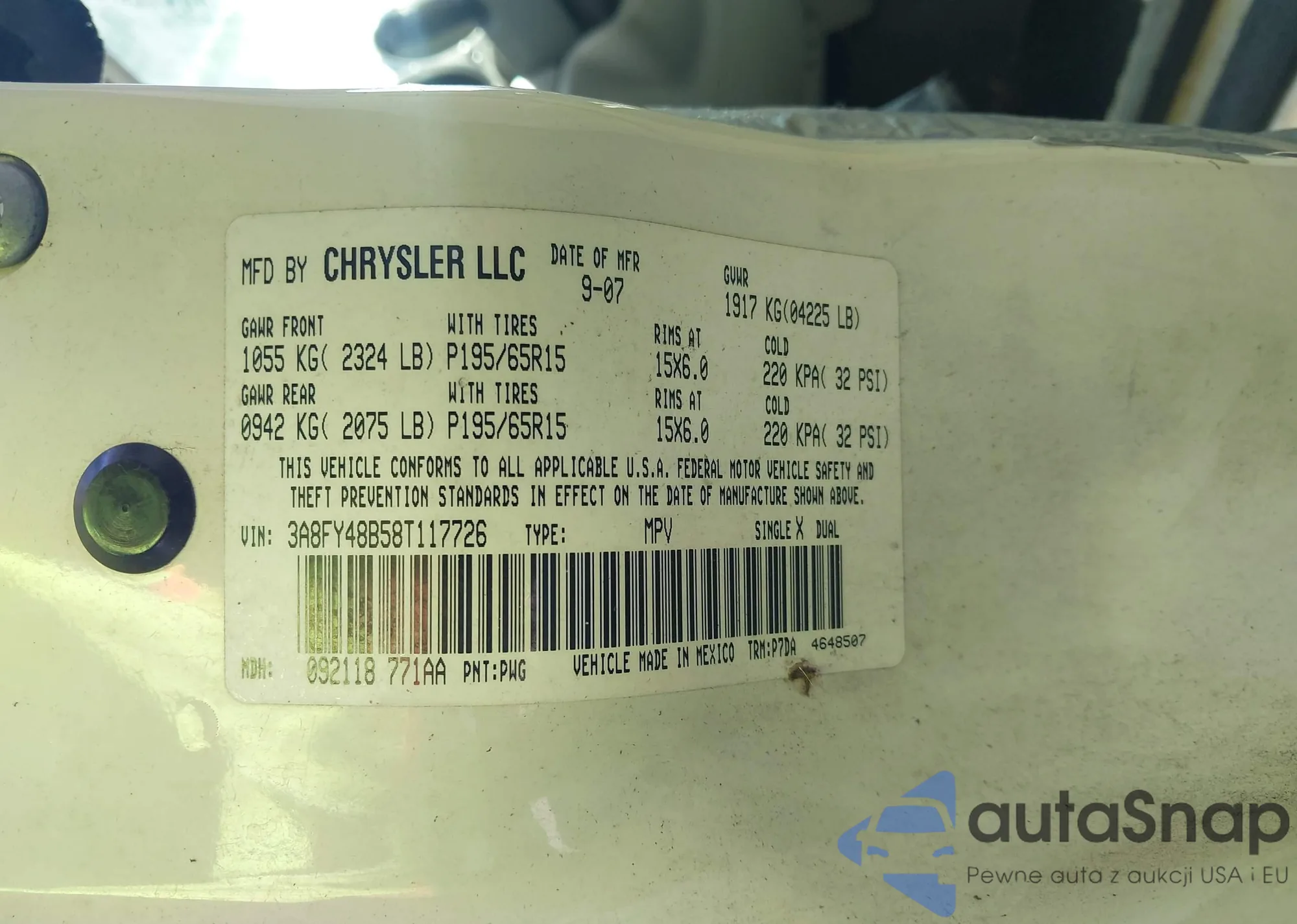 • VIN 3A8FY48B58T117726