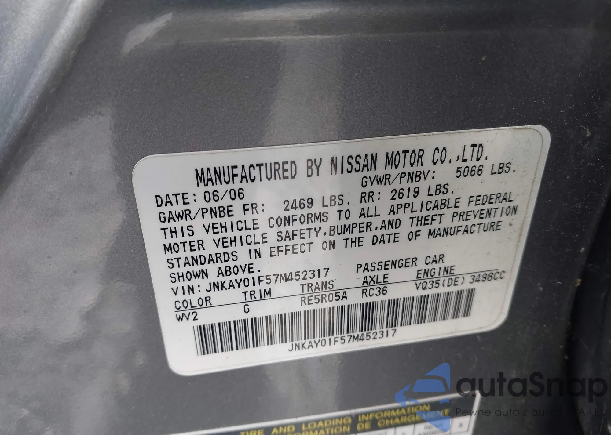 LOT: 43008617 VIN: JNKAY01F57M452317