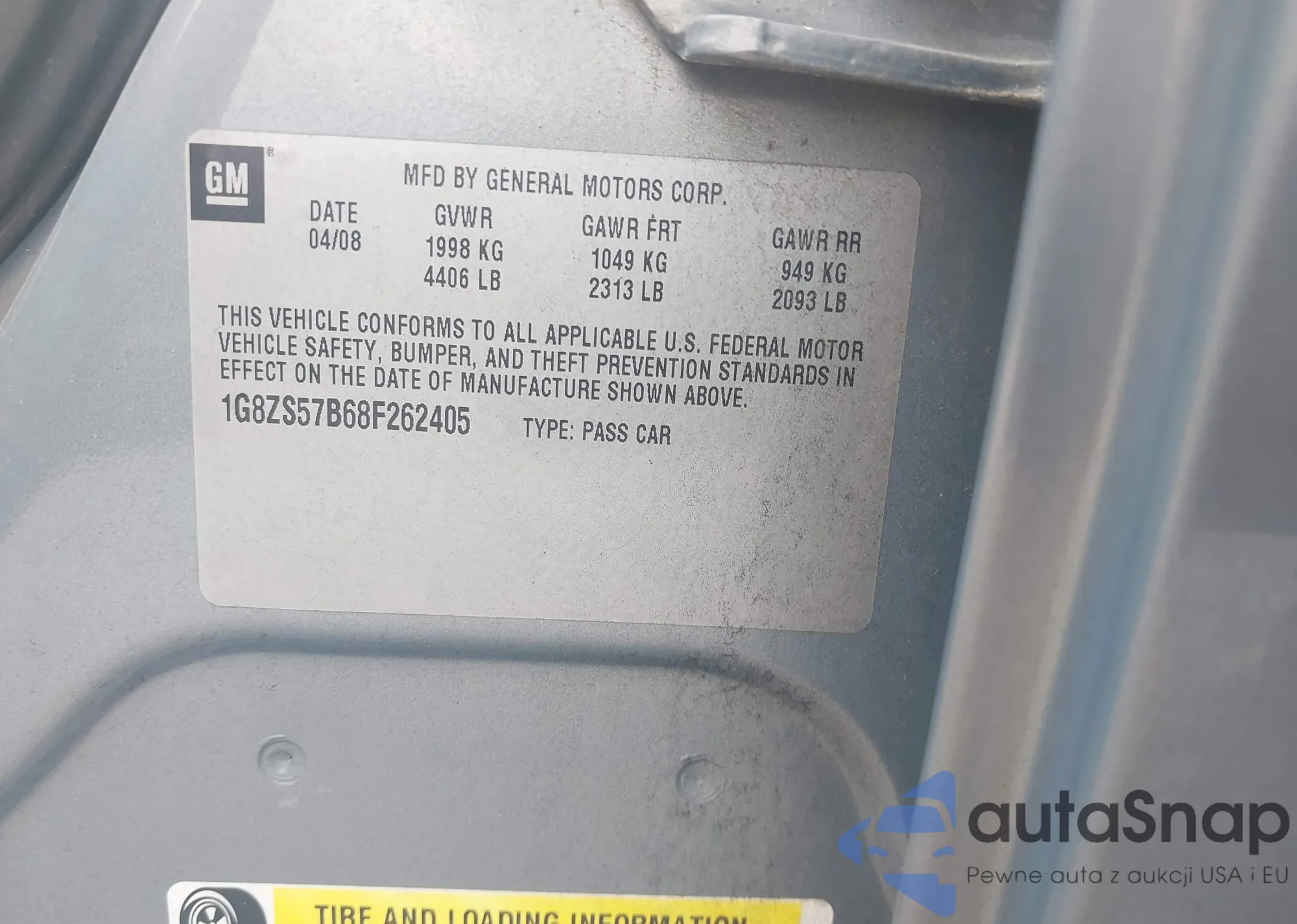 • VIN 1G8ZS57B68F262405
